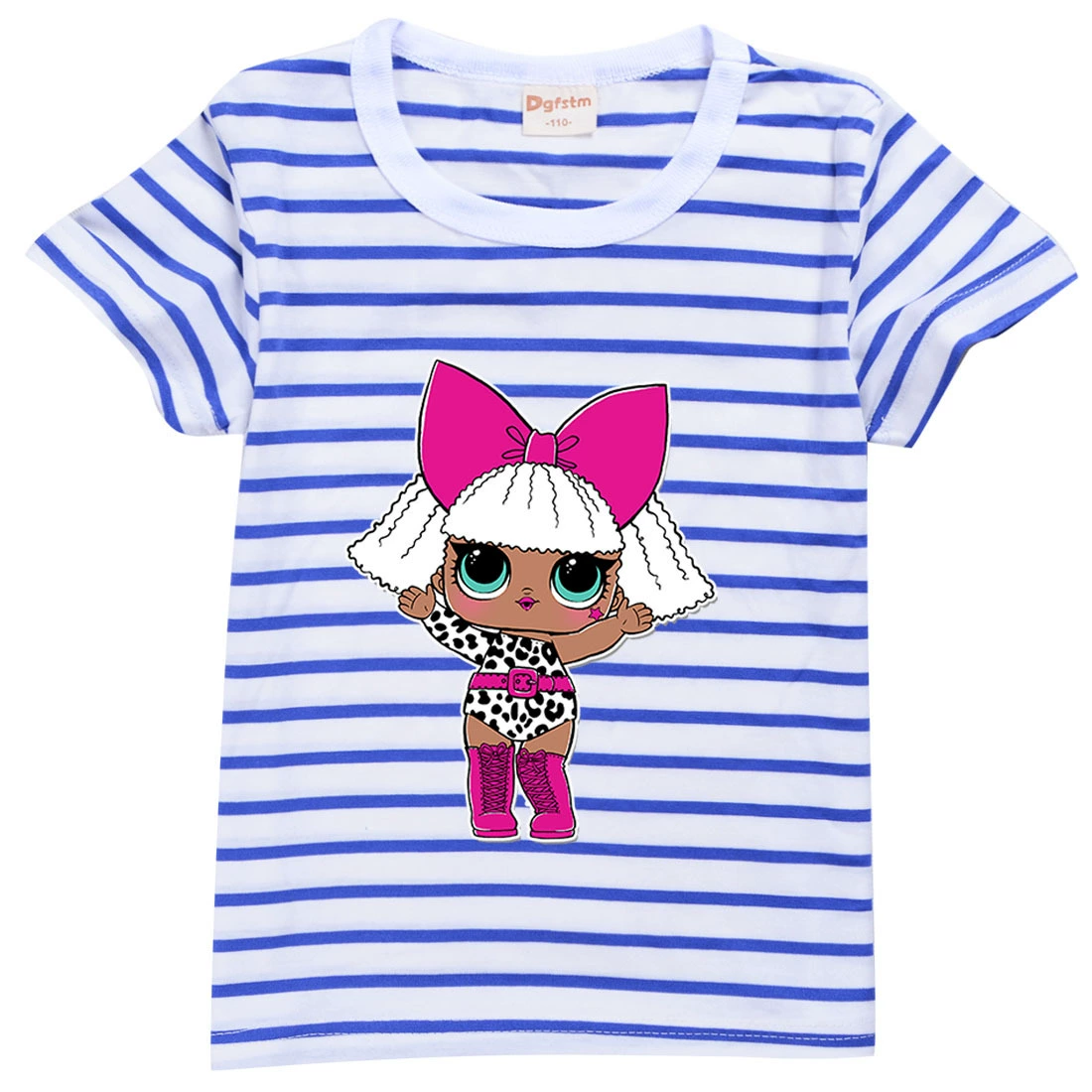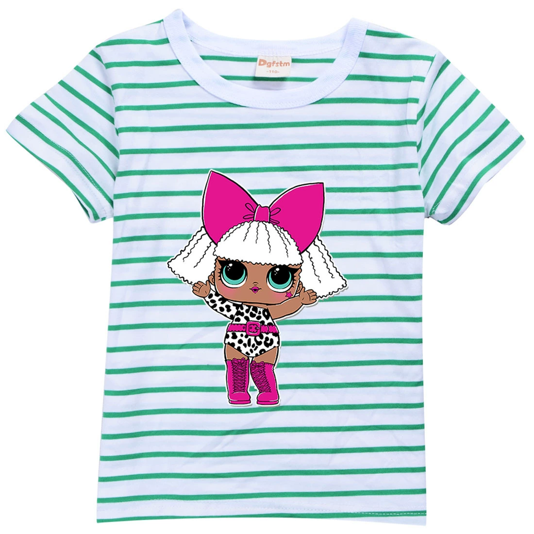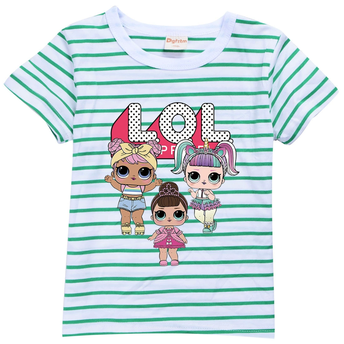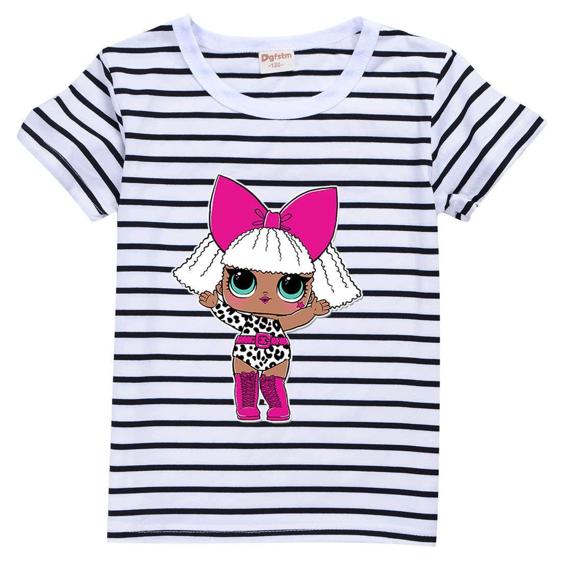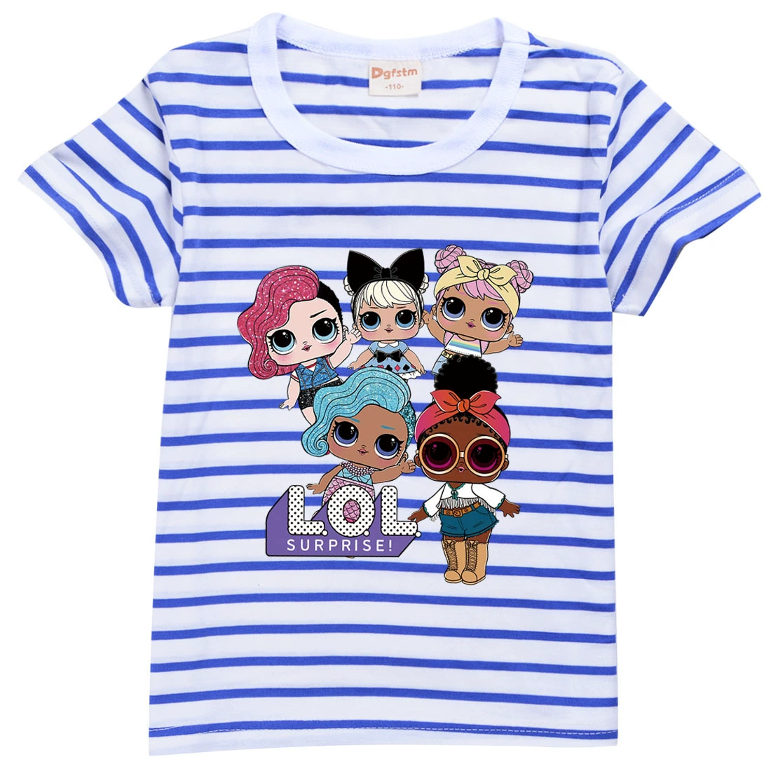 LoL SurpriseЛетняя хлопковая футболка в полоску для маленьких девочек, топы с короткими рукавами и рисунком куклы, модная одежда для маленьких детей