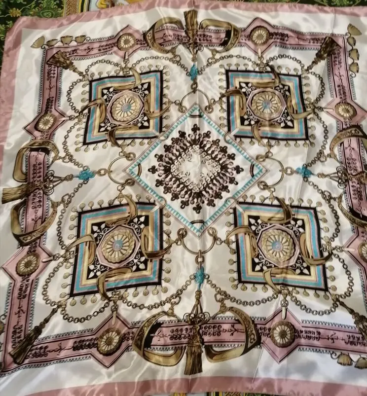 Носовые платки шелковый шарф 90*90 см с принтом атласный большой квадратный шелковый шарф шали для женщин роскошный бренд дизайнерский хиджаб