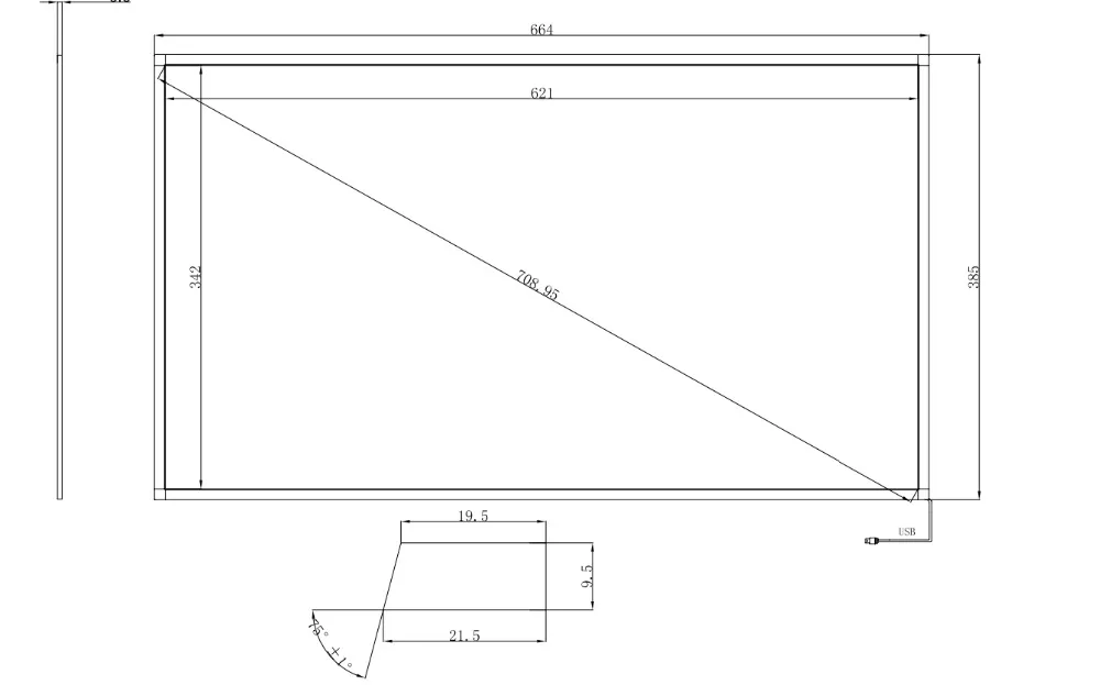 28 дюймов 10 точек 16:9 соотношение ИК мульти сенсорный экран Размер продукта чертеж:
