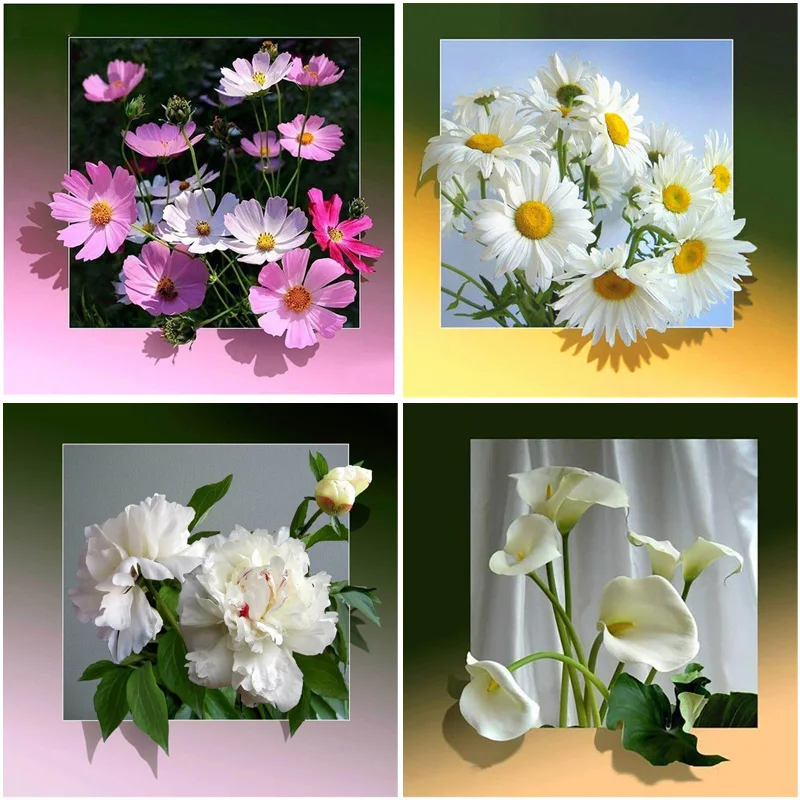 Алмазная картина 5D "сделай сам", Маргаритка, крест с цветами розы стежка, мозаика, алмазная вышивка, круглые полимерные стразы украшение для дома
