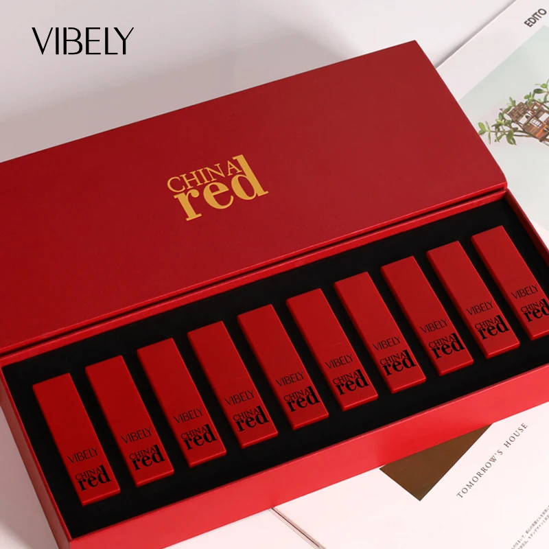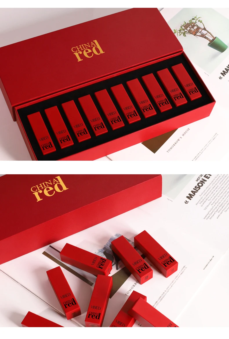 10 шт. сексуальные матовые бархатные помады, подарочный набор, увлажняющие длинные искусственные помады, Рождественская Подарочная коробка, набор для макияжа