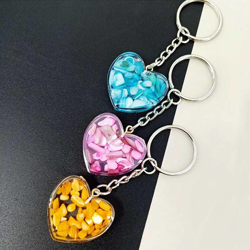 Брелок для ключей в форме сердца, акриловый прозрачный брелок с блестками для автомобиля, изящный подарок для пар, ювелирные аксессуары