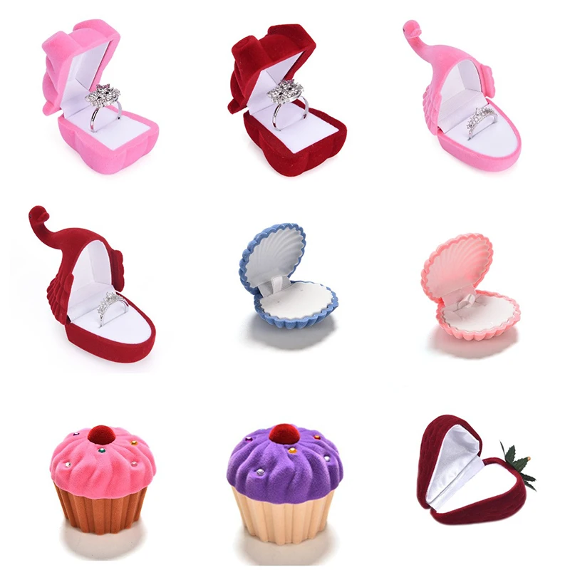 Шкатулка бархатная для ювелирных изделий, милый Контейнер для колец, серег, ожерелий, браслетов, Подарочная коробка с держателем, 24 стиля, 1 шт.