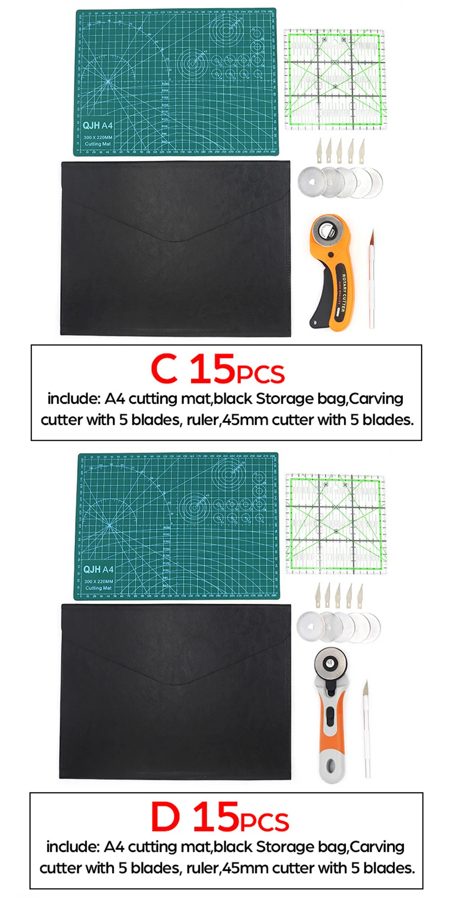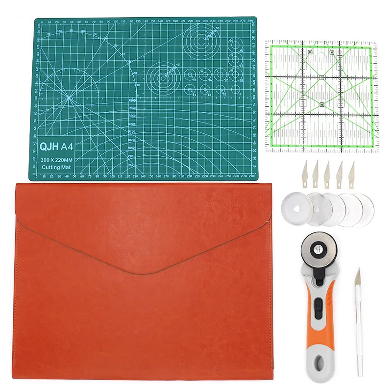 Набор кожаных инструментов для рукоделия, кожевенный резак с лезвиями, швейная Лоскутная линейка, А4, разделочный коврик, сумка для хранения, кожаные принадлежности