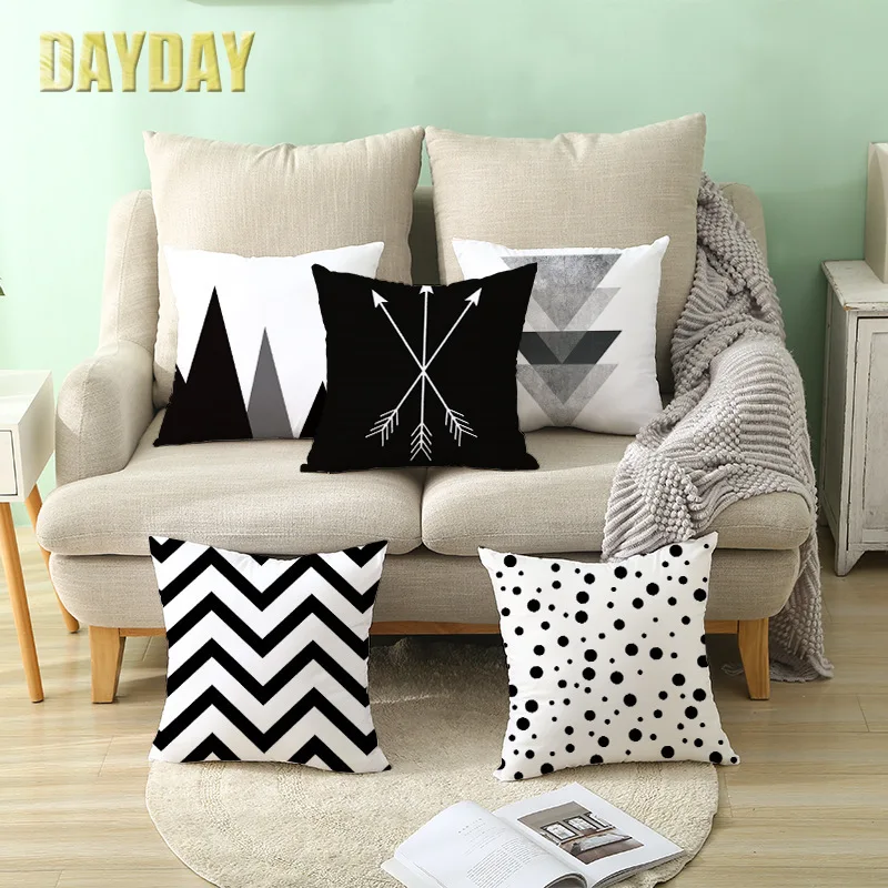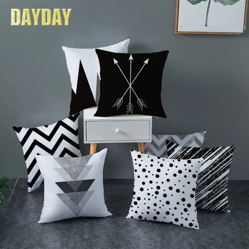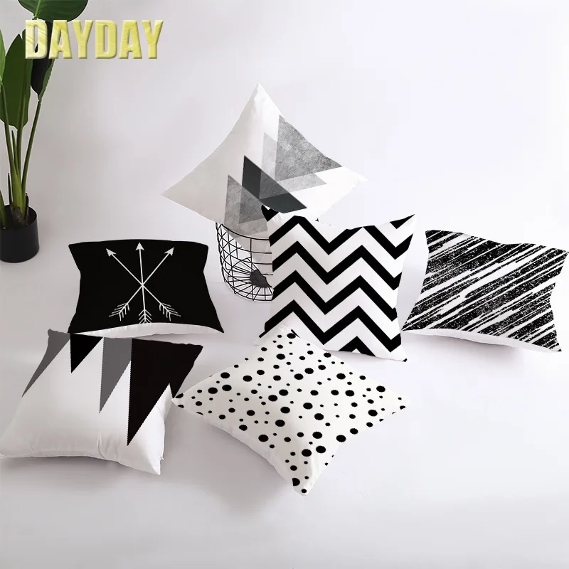 Черно-белая Подушка DAYDAY из полиэстера с принтом, чехлы для стульев, Декоративные Чехлы для мягких сидений, искусственная кожа 45*45