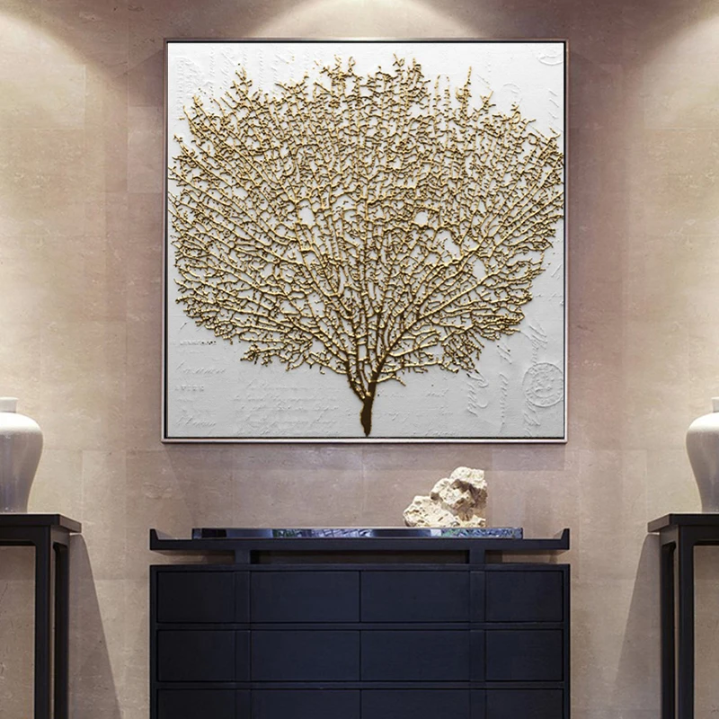 Абстрактная Золотая Картина на холсте с деревом, современная абстрактная фотография стены, картины для гостиной, домашний декор