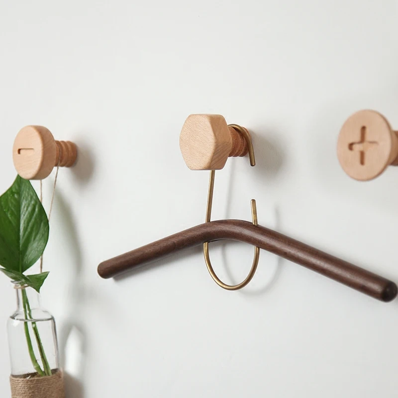 Креативные Деревянные Настенные подвесные оригинальные деревянные винтовые крючки для Северной Европы настенные украшения крючок в форме пуговицы крючок для пальто