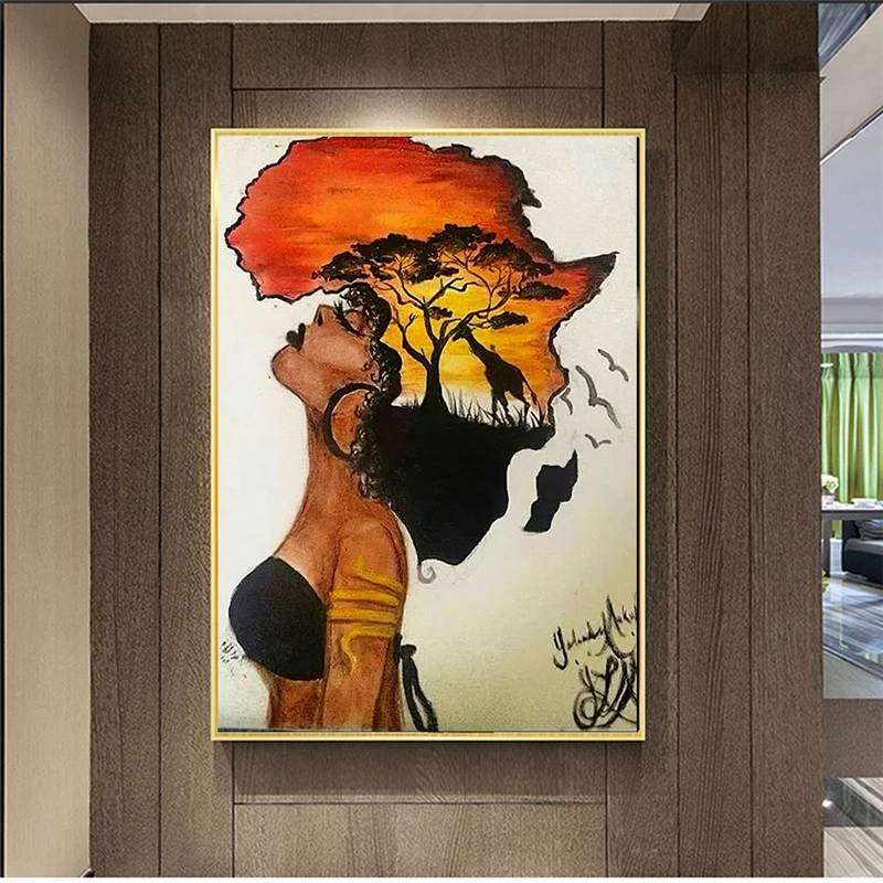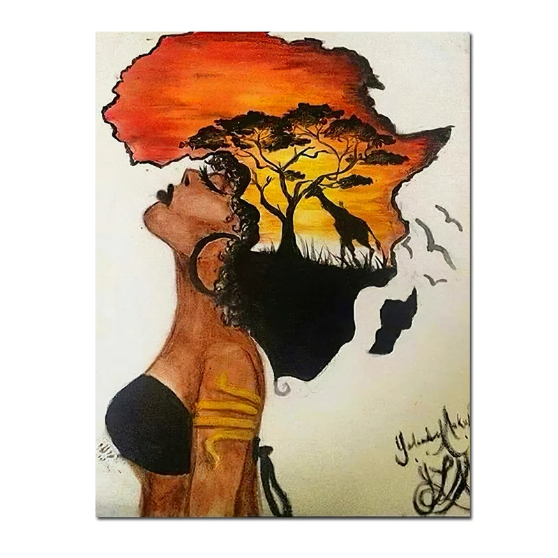 Классическая африканская женщина дневной свет абстрактный закат пейзаж стены Искусство холст печать и плакаты Картины домашний декор