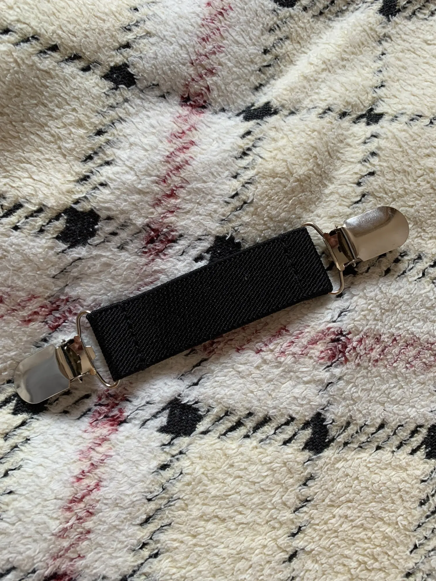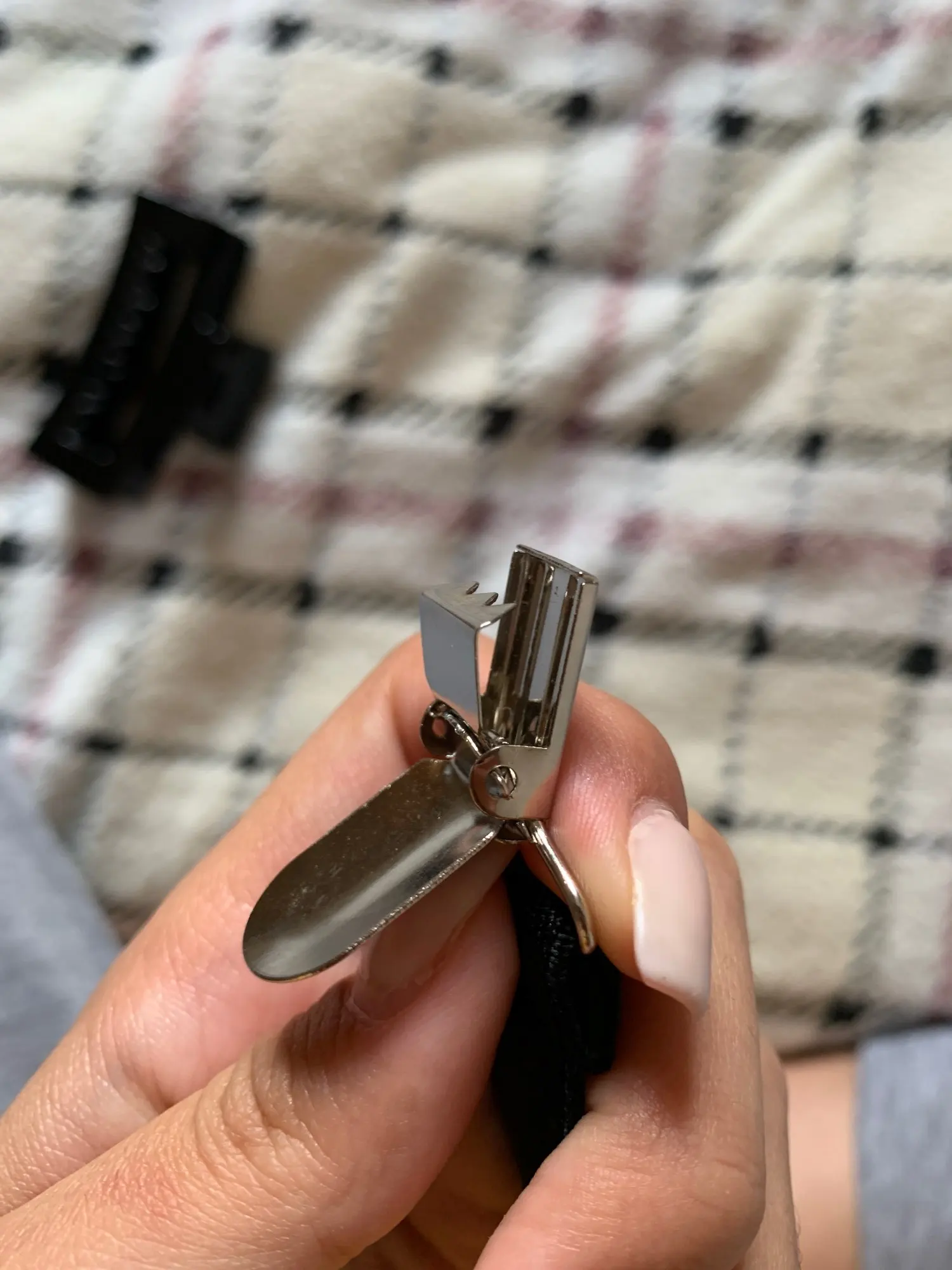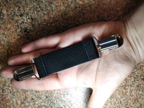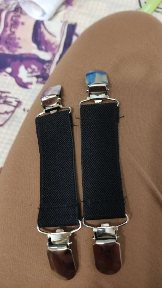 Как в описании. Клипсы с жёсткой металлической защёлкой есть опасность повредить тонкую ткань. купил для фиксации рубашки к наколенникам.