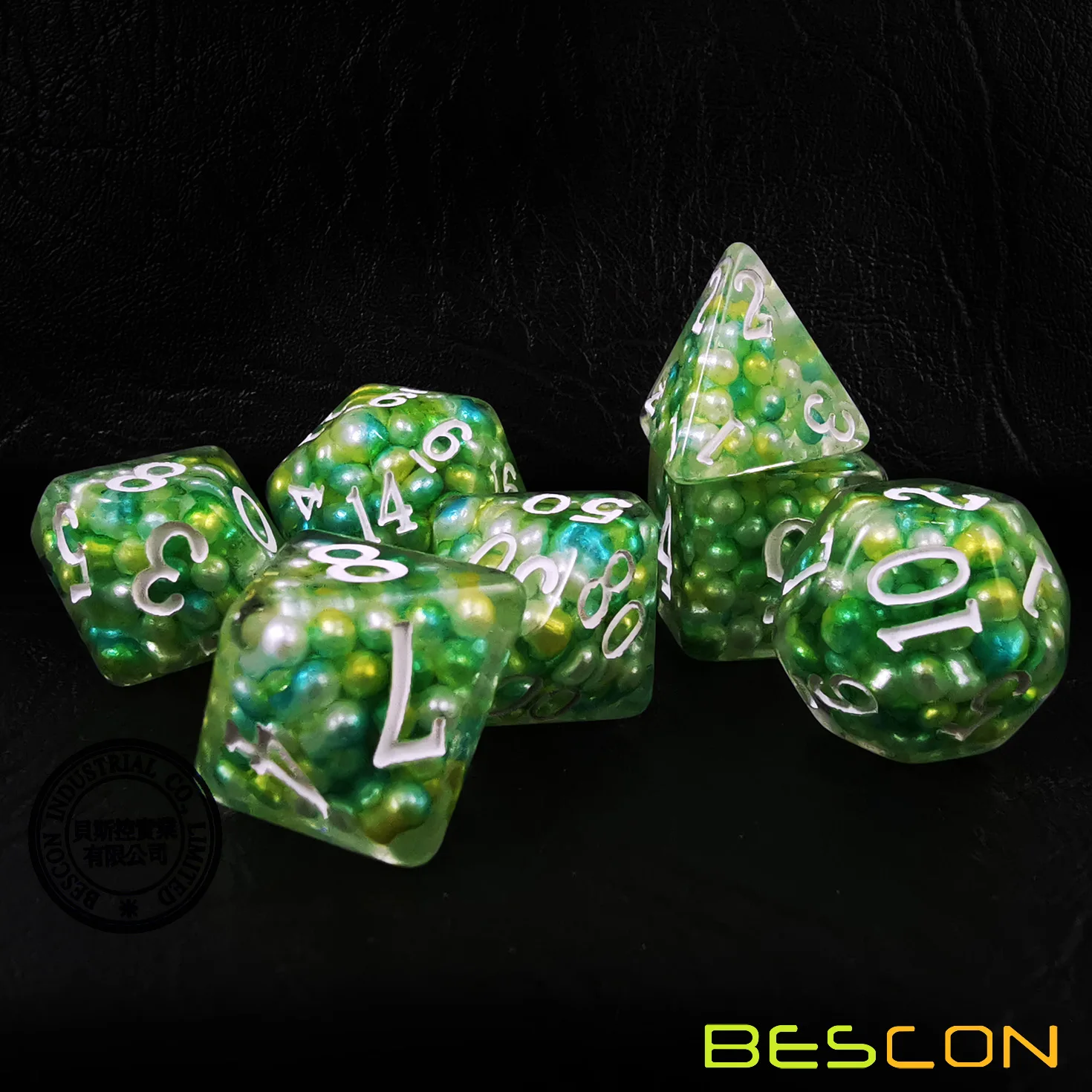 Bescon Olive Pearl Polyhedral Dice Set, Pearl Poly RPG Dice set of 7