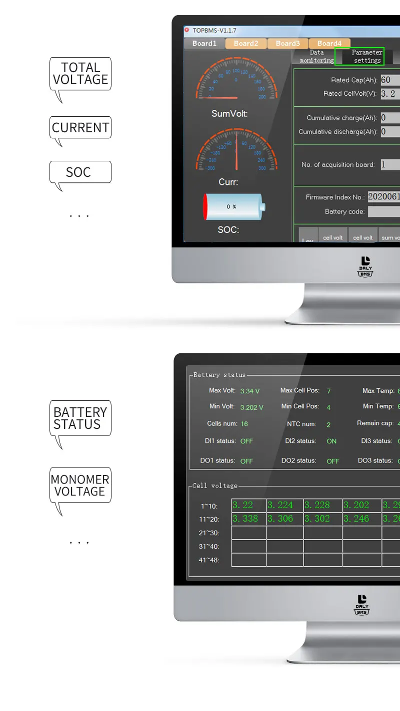 Важная особенность ◆ UART: UART является универсальным асинхронным приемником/передатчиком, он преобразует данные, которые будут передаваться между последовательной связью и параллельной коммуникацией. Как чип для преобразования параллельных входных сигналов в серийные Выходные сигналы, UART обычно интегрируется в другие коммуникационные интерфейсы. ◆ RS485: Пожалуйста, выберите модель RS485. RS-485 принимает сбалансированную передачу и дифференциальный прием, поэтому он имеет способность подавлять помехи в обычном режиме. ◆ Модуль Bluetooth: если вам нужна эта функция, пожалуйста, выберите модуль bluetooth, если вы не покупаете его, мы не отправим его вам. ◆ Вы должны купить аксессуары ниже отдельно: 1. Usb-кабель UART 2. Кабель USB к RS485 3. Модуль Bluetooth 4. Индикатор питания 5. ЖК-экран управления BMS