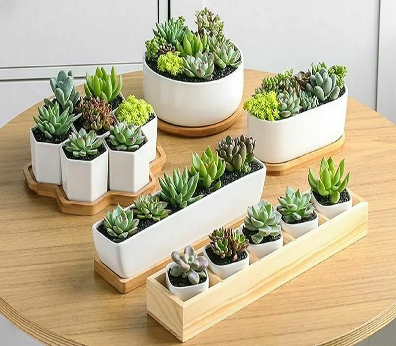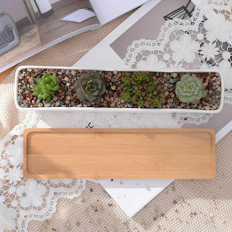 Керамический цветочный горшок с бамбуковым подносом, горшок для суккулентов, садовый бонсай, микро-садовый Свадебный Мини цветочный горшок, 1 комплект