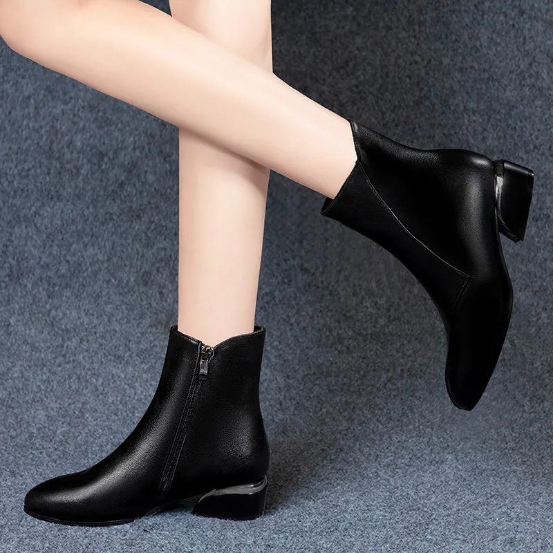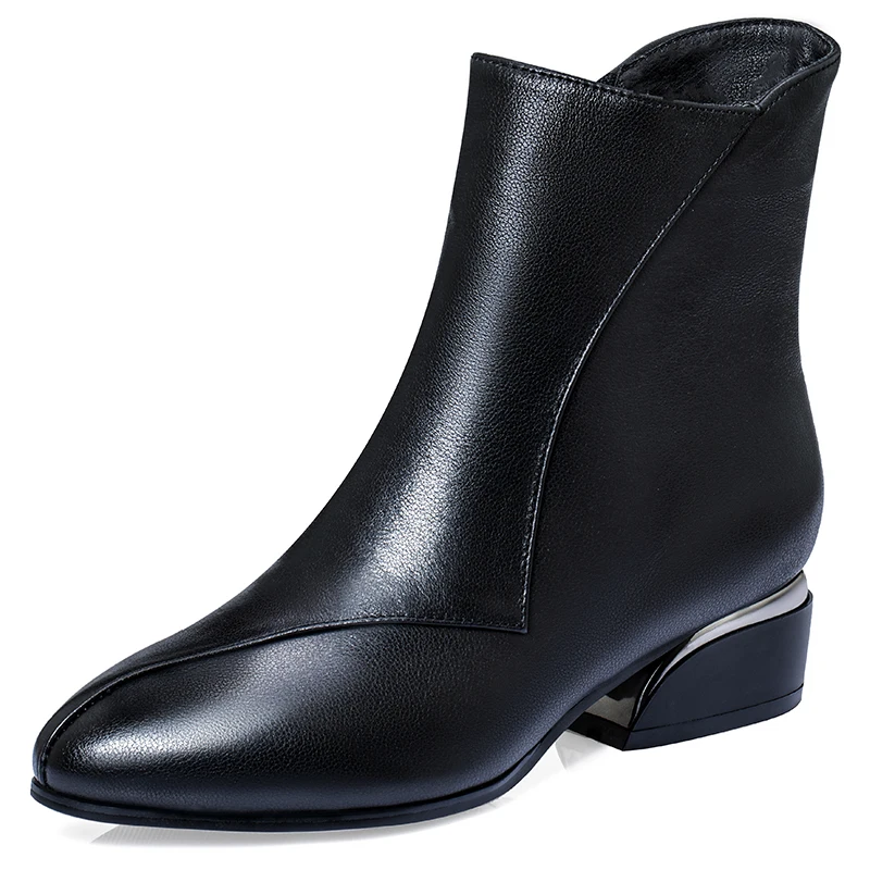 Ботинки женские зимние кожаные, с острым носком, на платформе и каб...