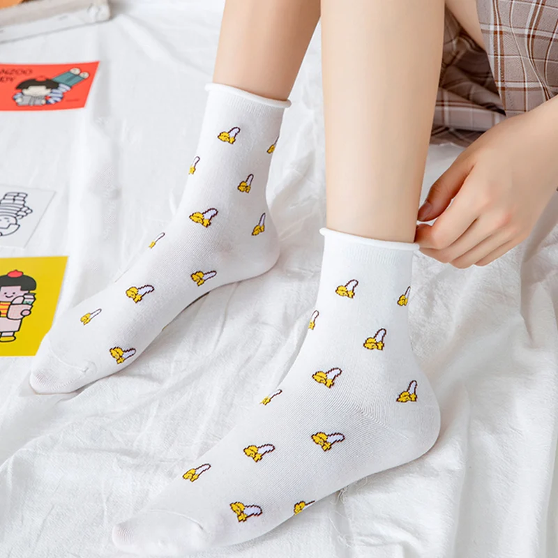 Мягкие хлопковые дышащие женские носки осень-зима милые Мультяшные носки длиной по щиколотку Harajuku Теплые эластичные носки средней длины Sokken