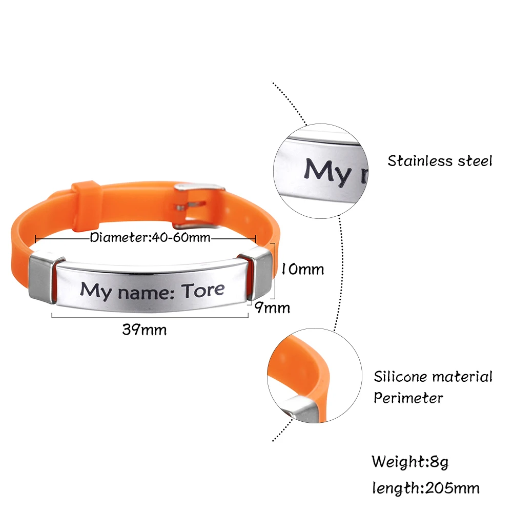 Браслет детский из нержавеющей стали, регулируемый, из силикона, имя, номер телефона