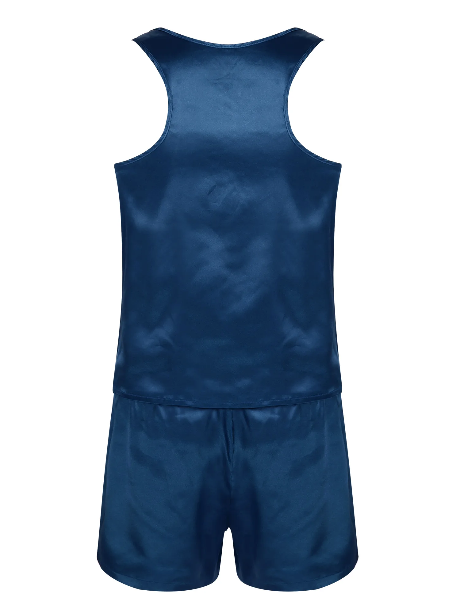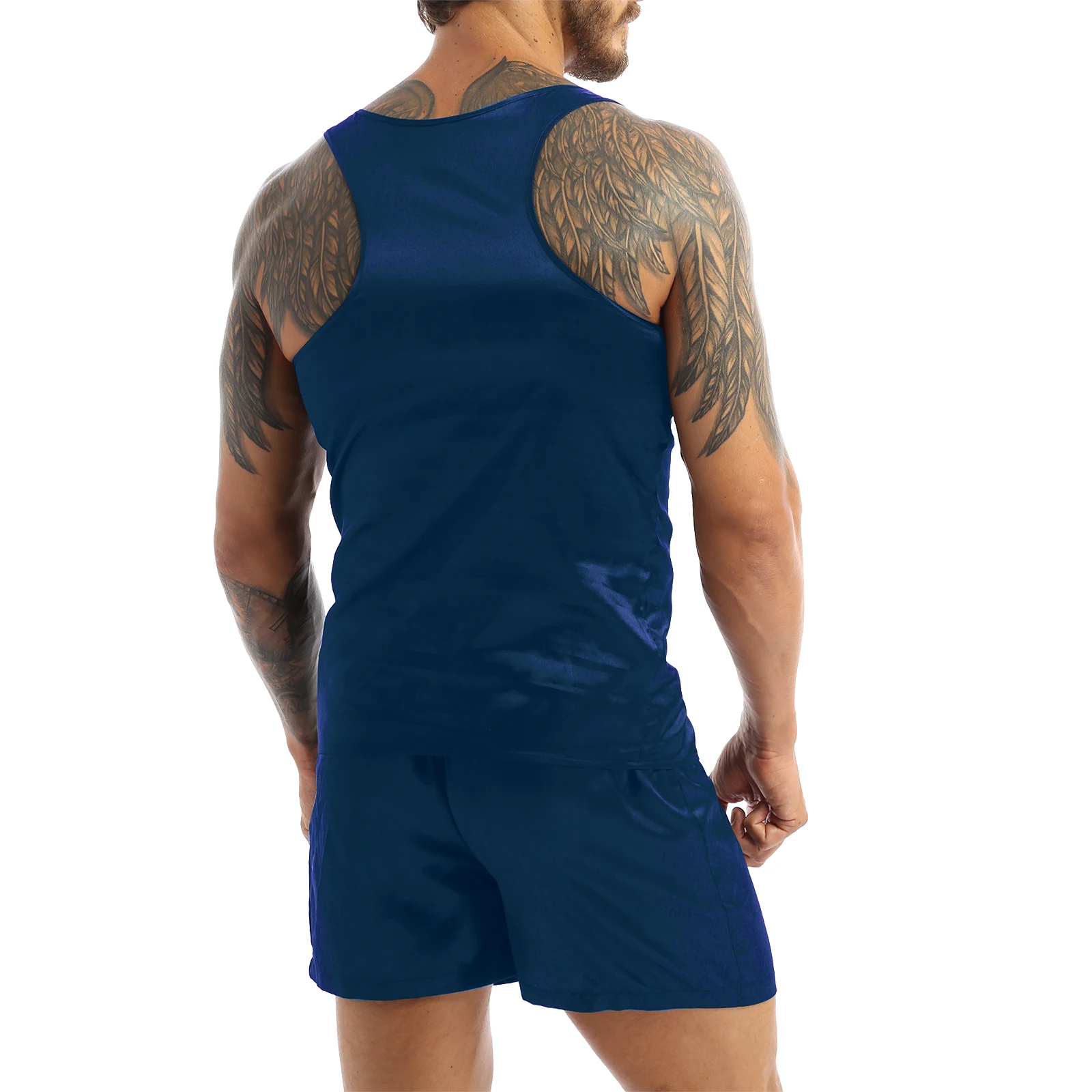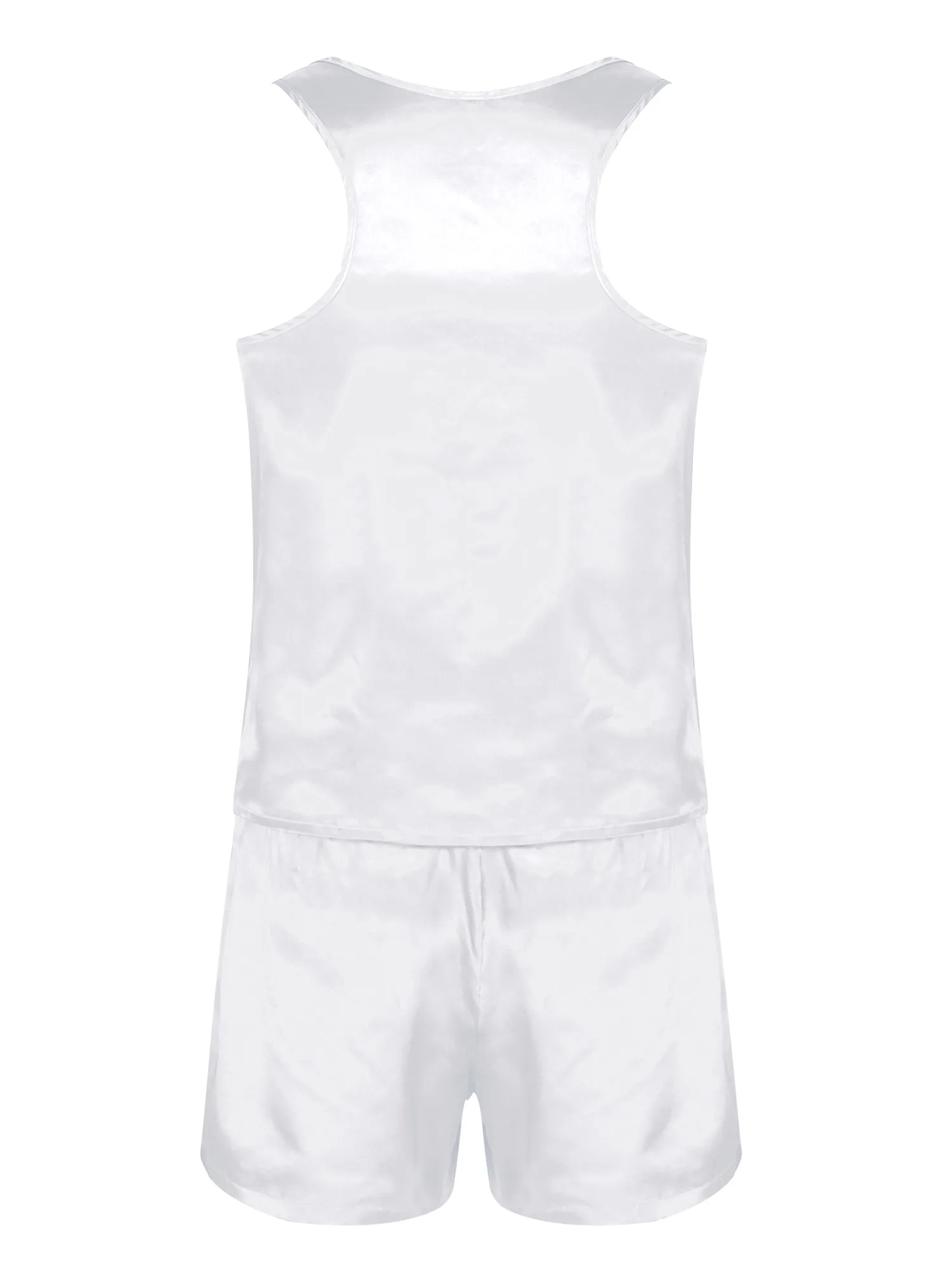 Пижама Мужская атласная шелковая, пикантный пижамный комплект, майка без рукавов, мини-шорты, мягкая Louge халат, ночная рубашка, летние топы