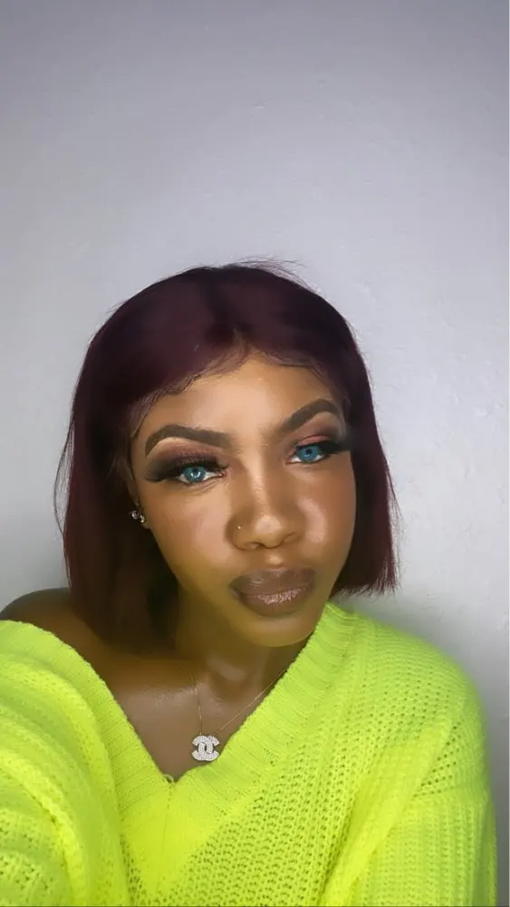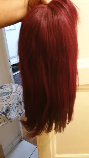 Очень красивый бордовый парик из человеческих волос с быстрой доставкой! Также есть Бесплатные Подарочные ресницы. Очень хорошо! Я закажу снова!