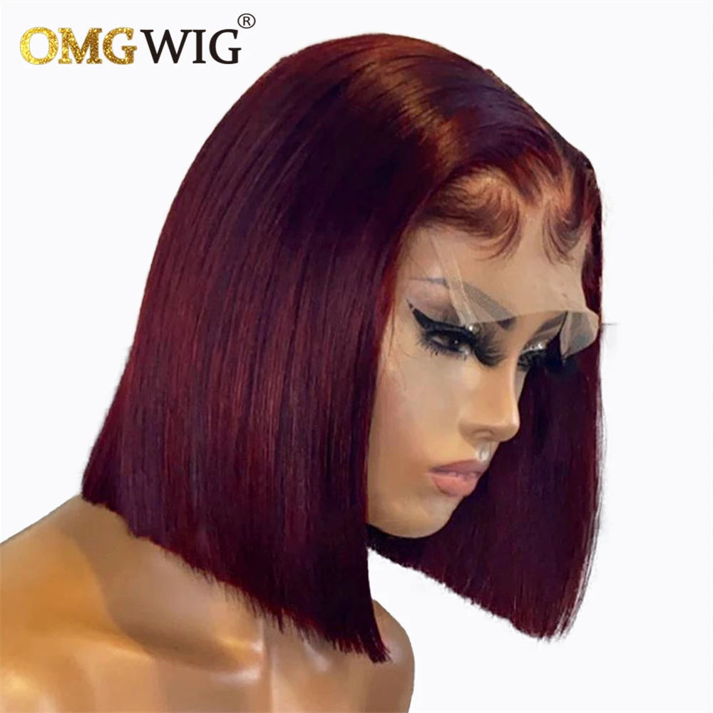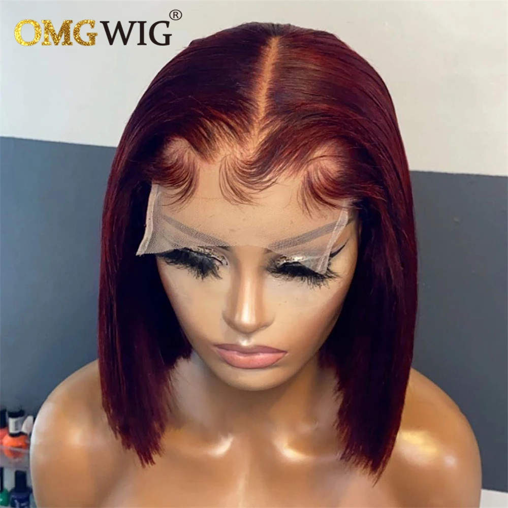 Парик с застежкой 4X4 бордовый 99J цвет Пикси короткий Боб из натуральных волос на фронтальной сетке для чернокожих женщин предварительно выщипанные бразильские волосы Реми