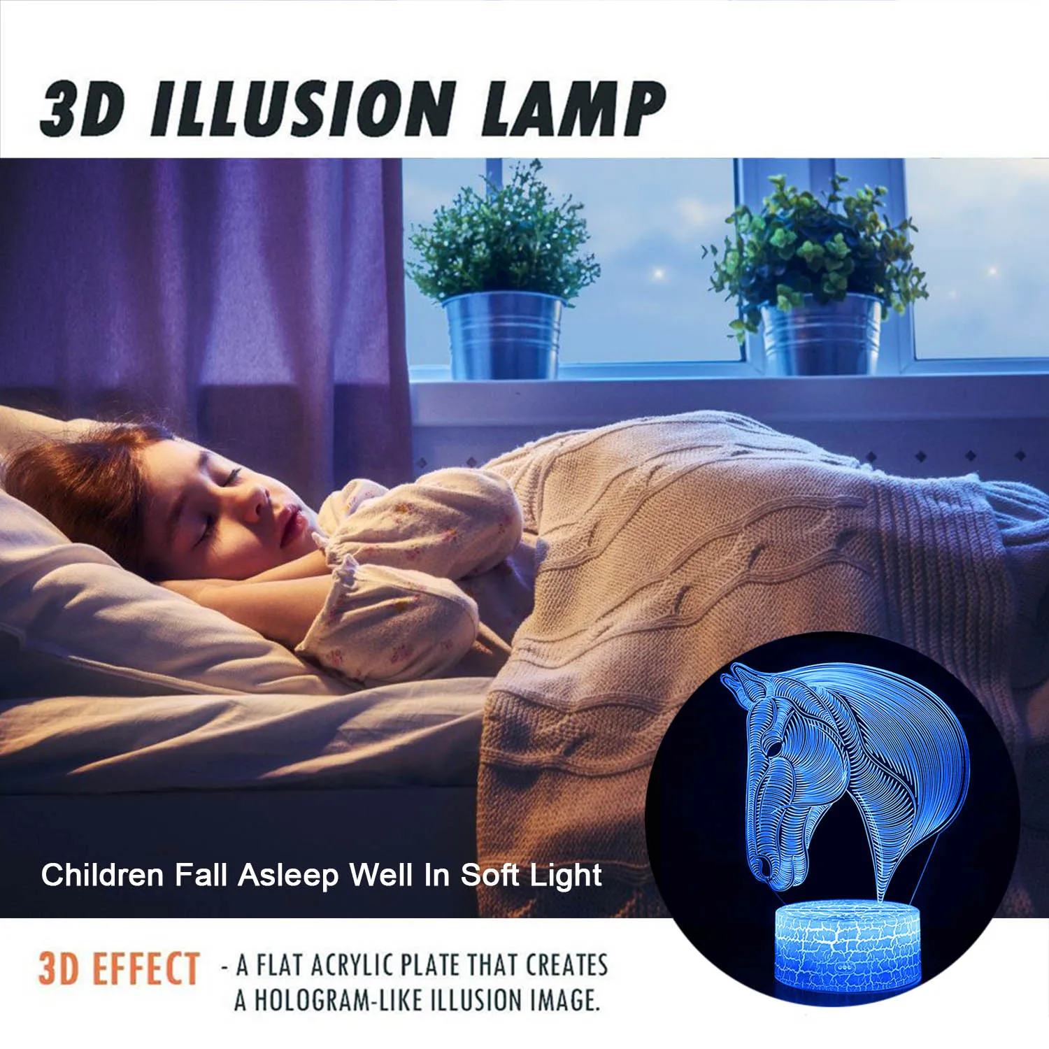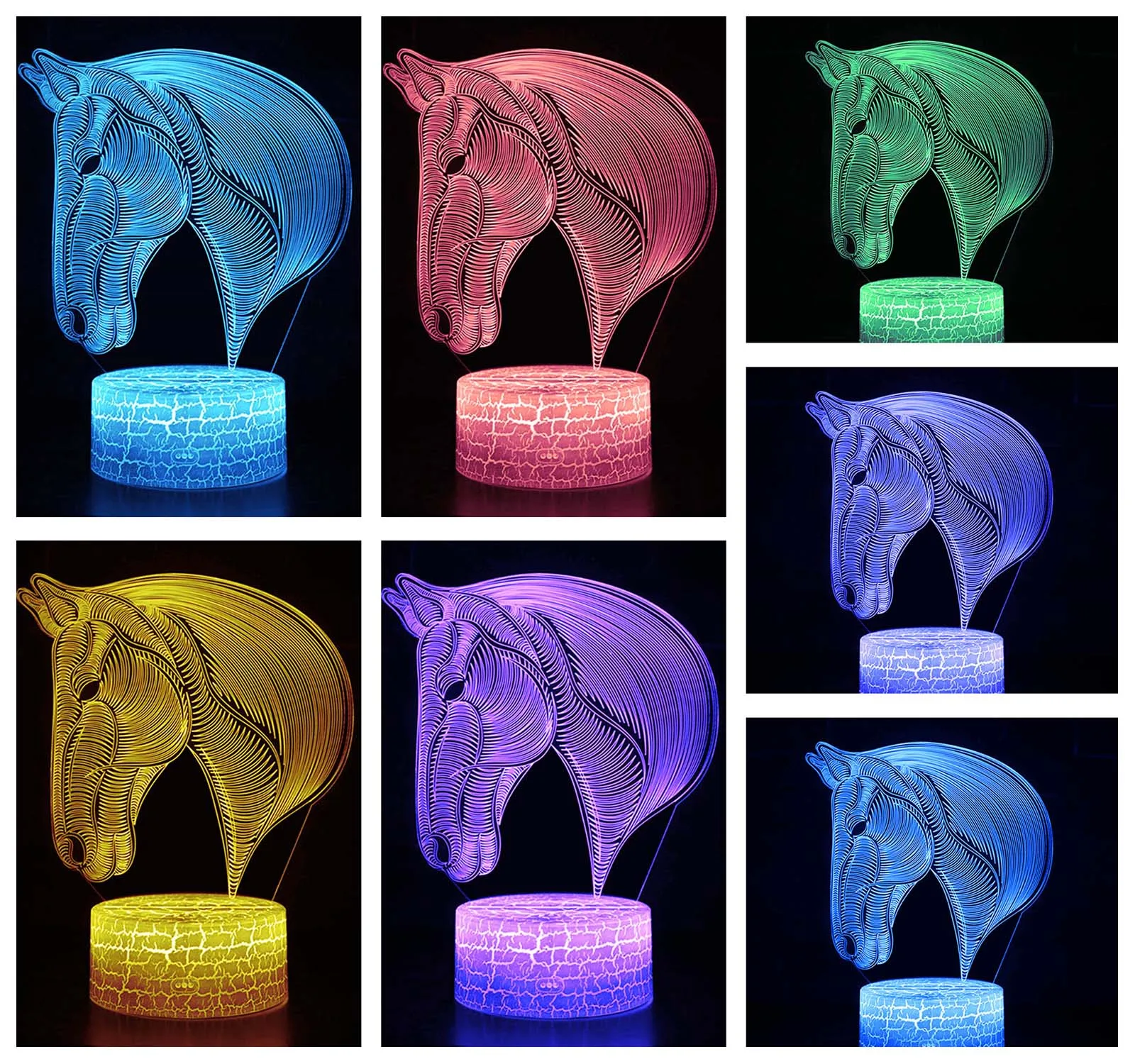3d иллюзия лошадь лампа Цвета Сменные ночной Светильник для детской спальни декора лампа-Ночник проектор для детей на день рождения подарки на Рождество