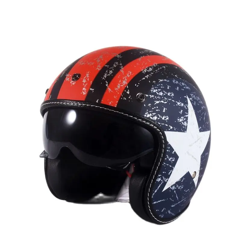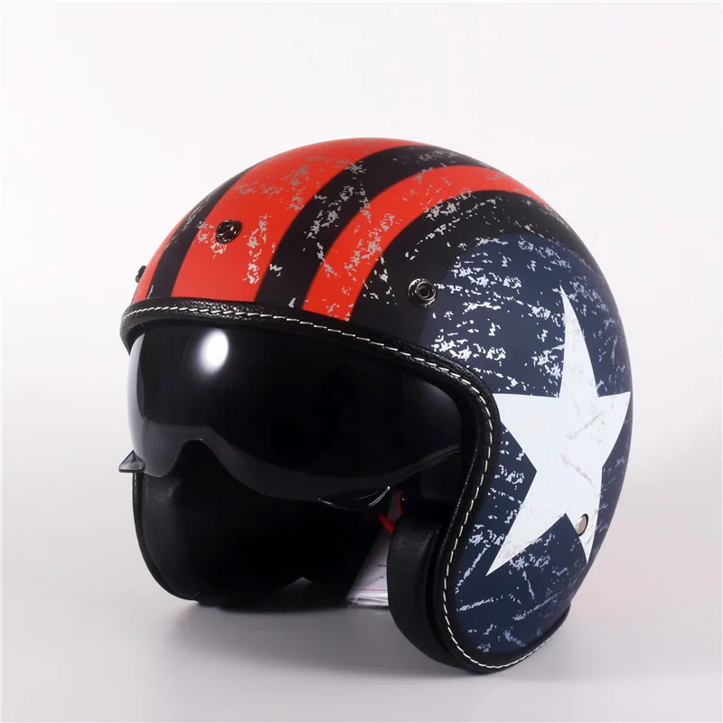 Новинка, мотоциклетный полушлем Cruiser 34, скутер с открытым лицом, винтажный в горошек + козырьки + внутренняя темная линза s M ate Black Xs s M L Xl