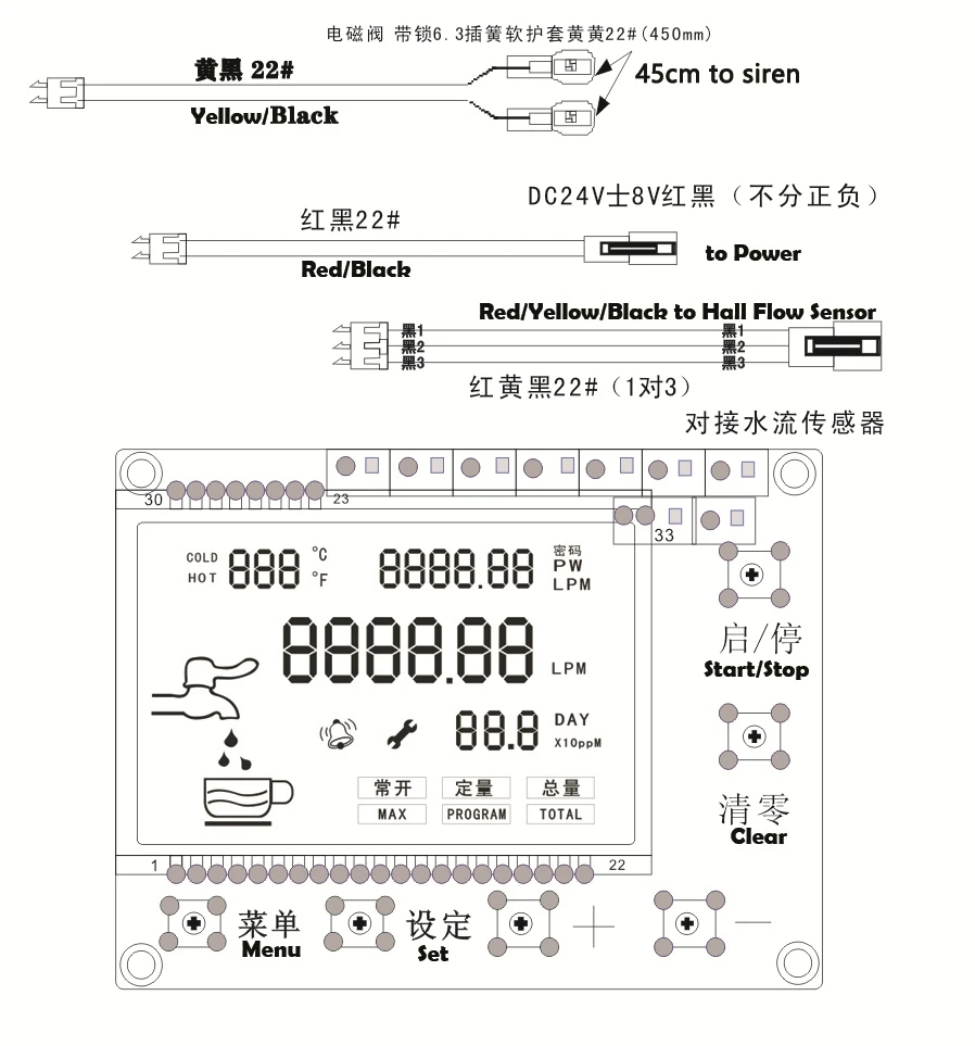 1. Контроллер цифрового дисплея US211MA может отображать мгновенный поток, блок потока L / min (или GPM),