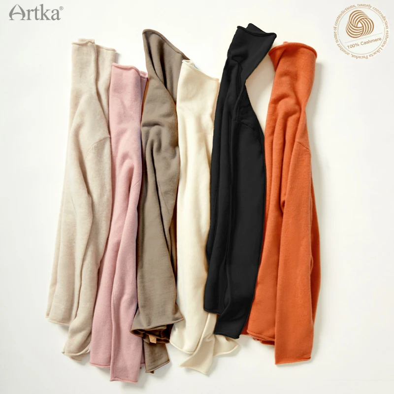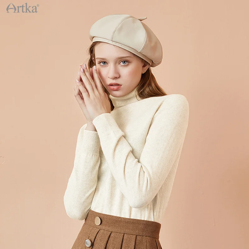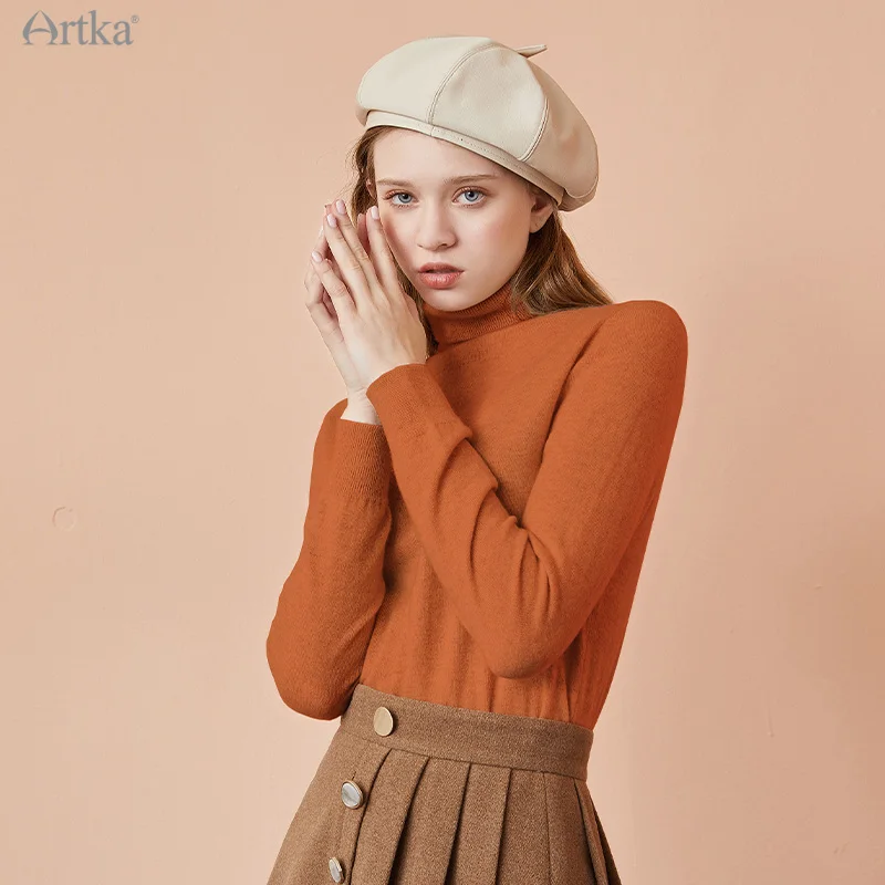 Женский трикотажный свитер ARTKA, Черный Элегантный мягкий кашемировый свитер с высоким воротником, SC28002D, зима 2020
