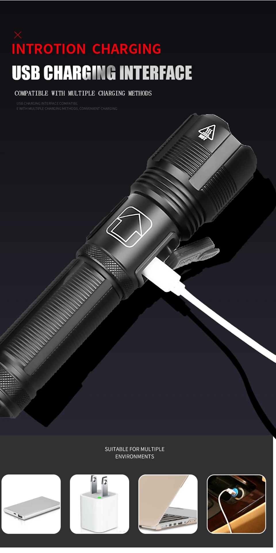 Фонарик XHP50XHP70 с USB-зарядкой, Водонепроницаемый Многофункциона...