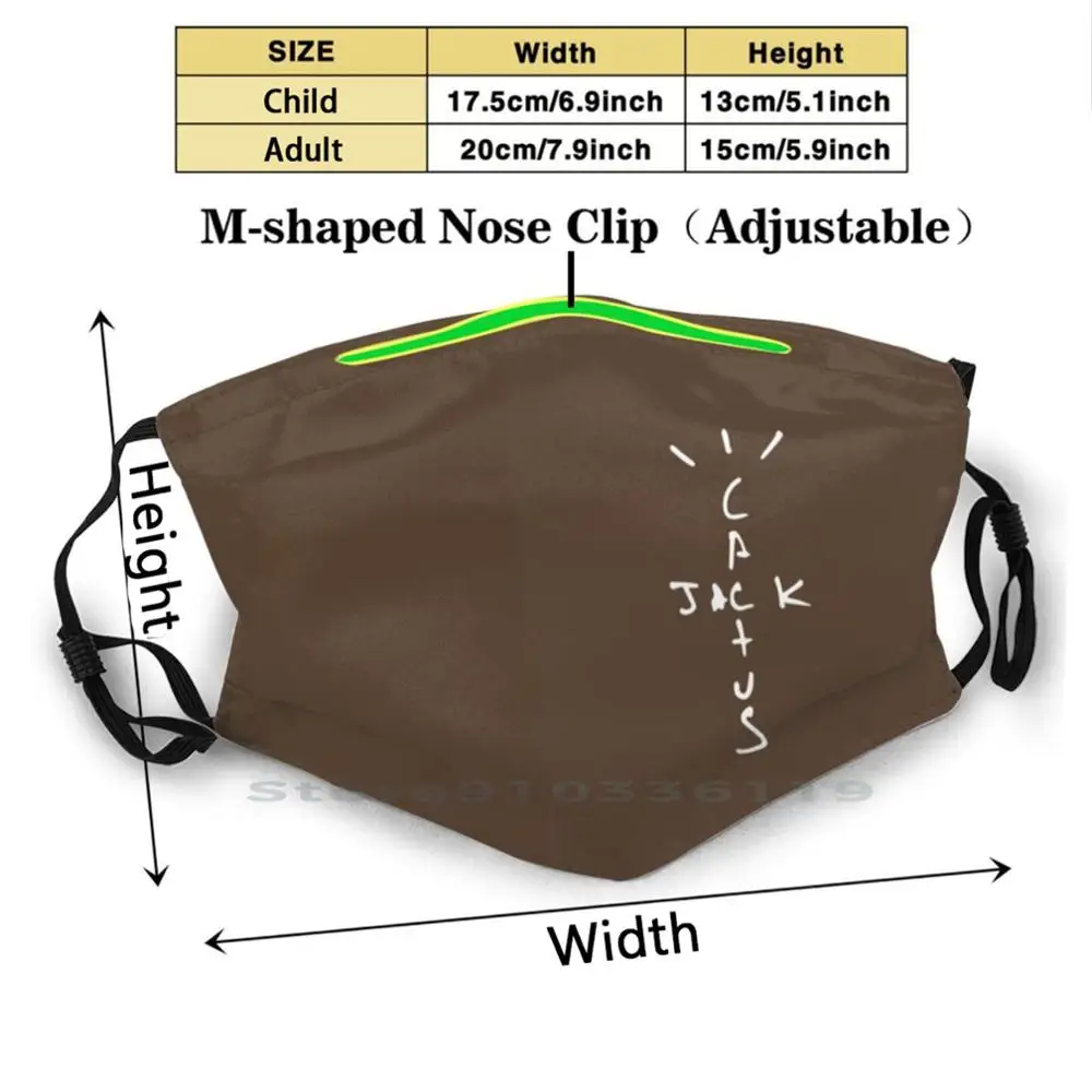 Многоразовая маска с принтом логотипа Cactus Jack, фильтр Pm2.5, детская маска для лица, кактус Джек Тревис рэп США