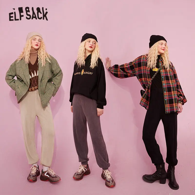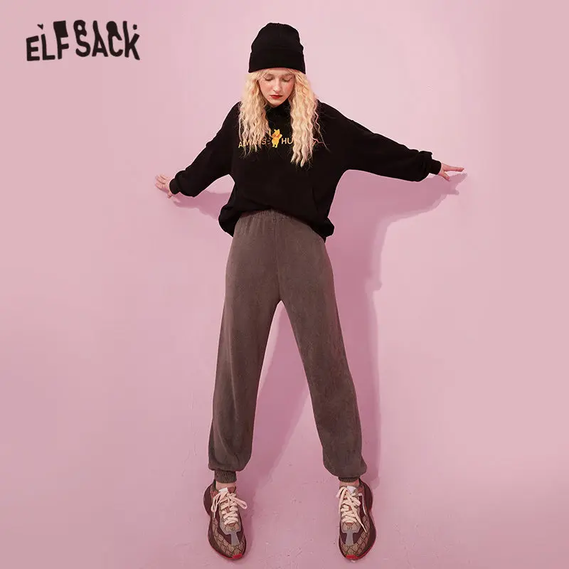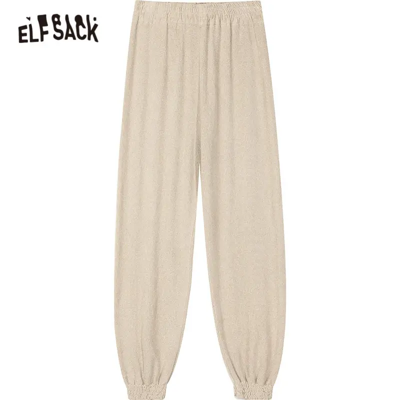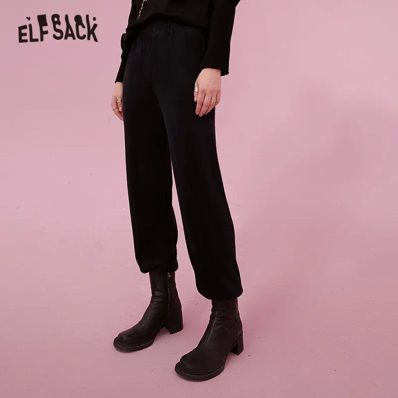 ELFSACK однотонные минималистичные Прямые повседневные женские шаровары, осень 2020, чистый эльф с высокой талией, Корейская Женская Базовая Повседневная Нижняя часть