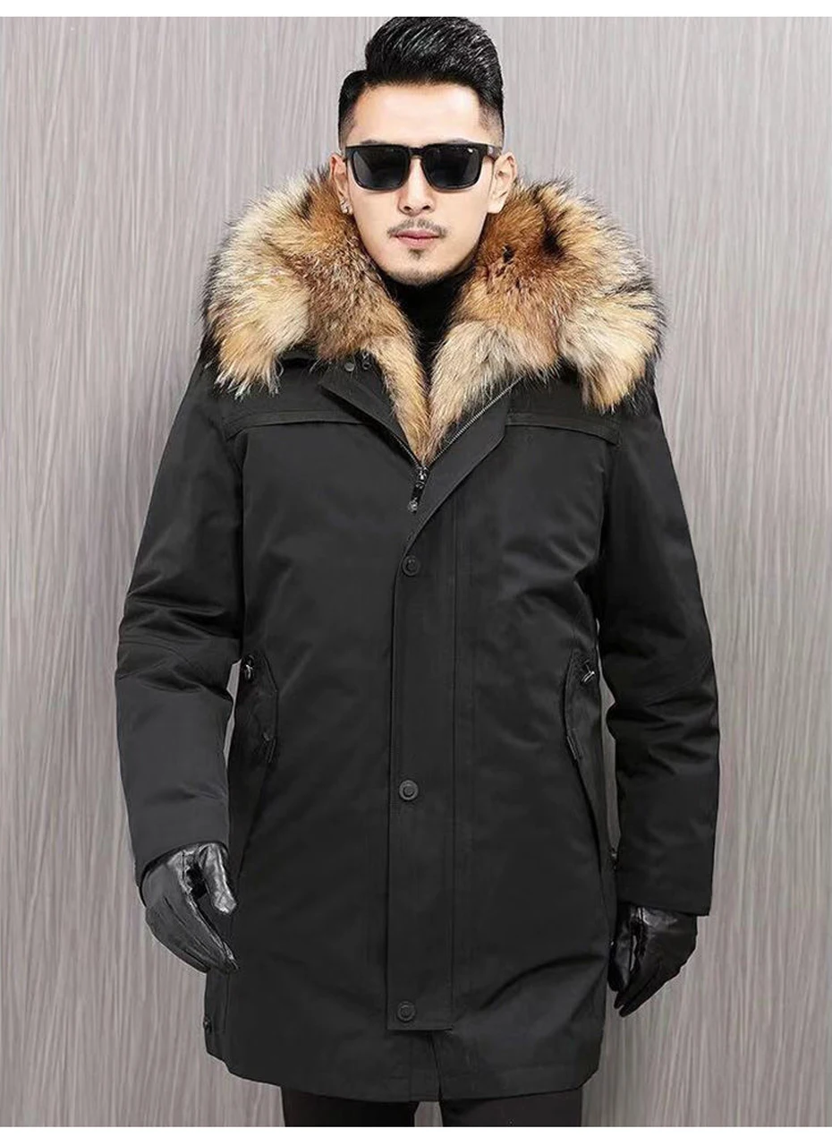 Мужская парка с капюшоном из искусственного меха енота, теплая, для...