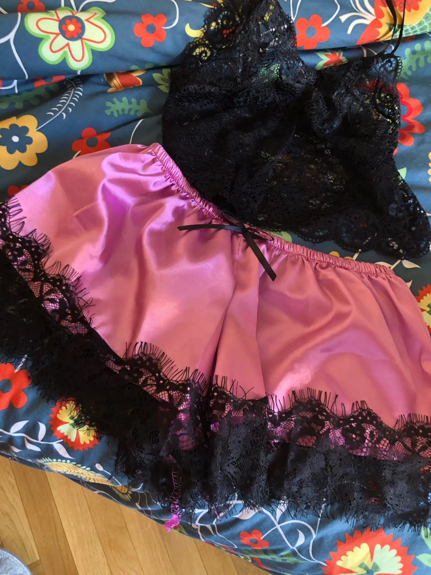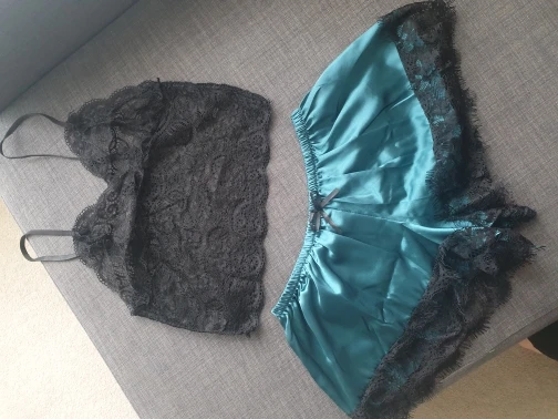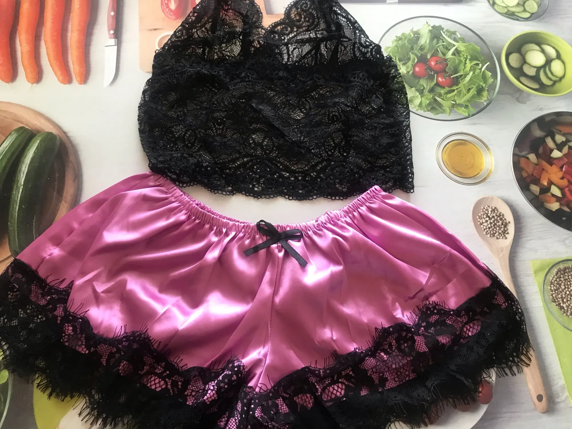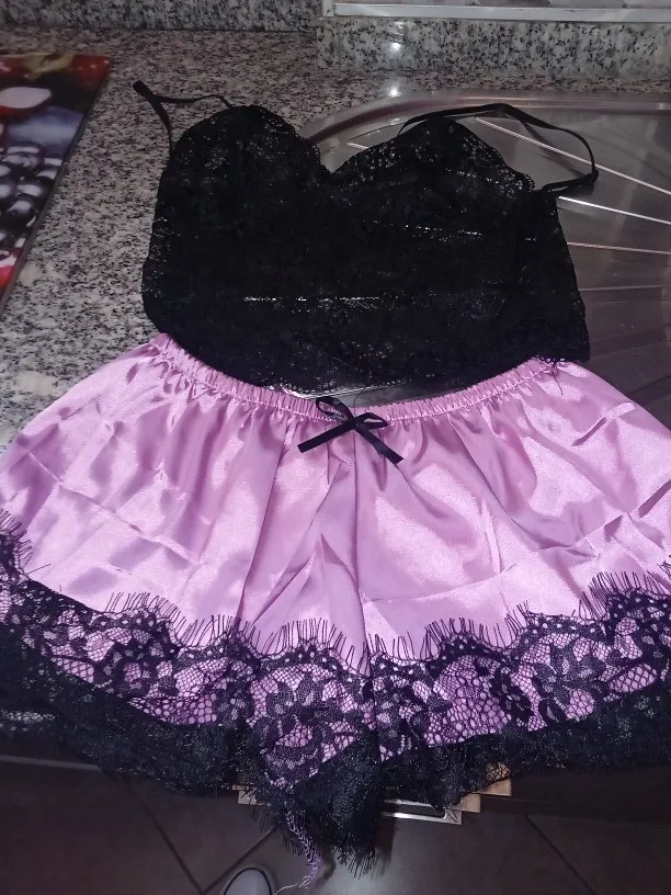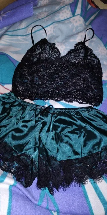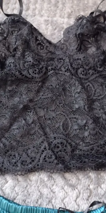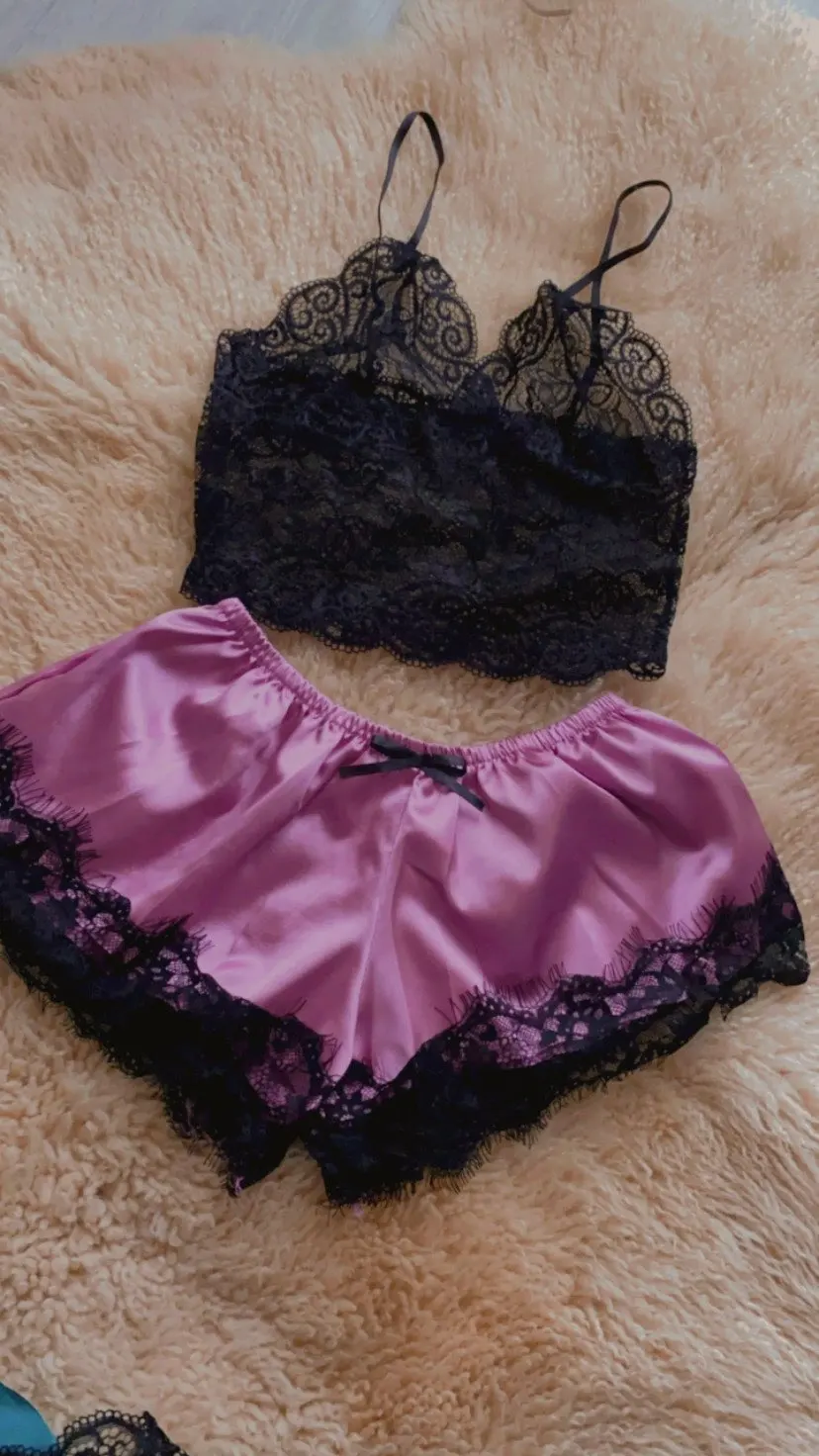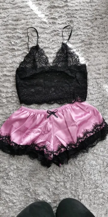 Очень милая пижама, удобные шортики и топ. Он полностью ажурный и прозрачный.
