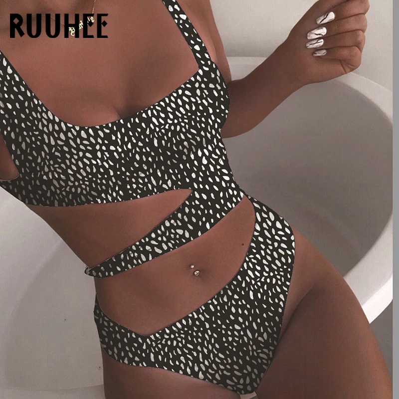 2020 сексуальный женский слитный купальник, женский купальник, бандаж, леопардовый Вырез, бразильский Монокини, купальный костюм для женщин