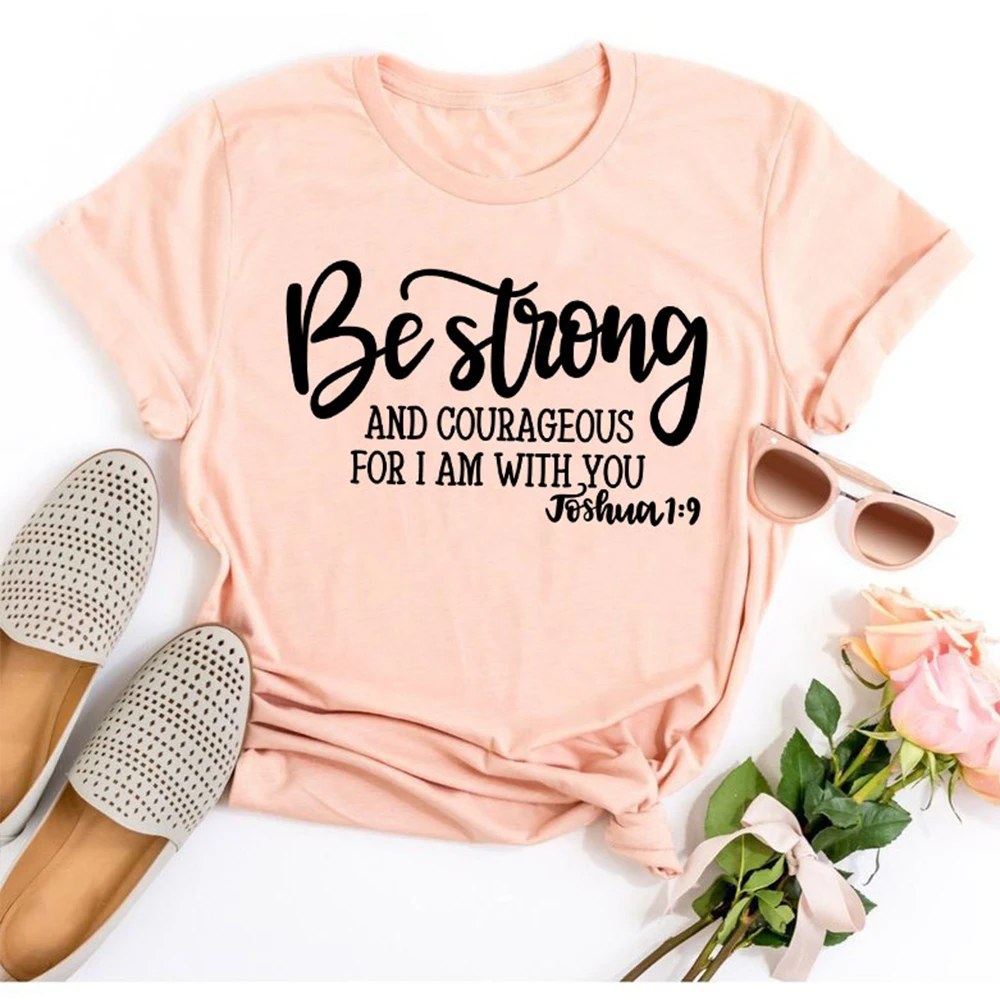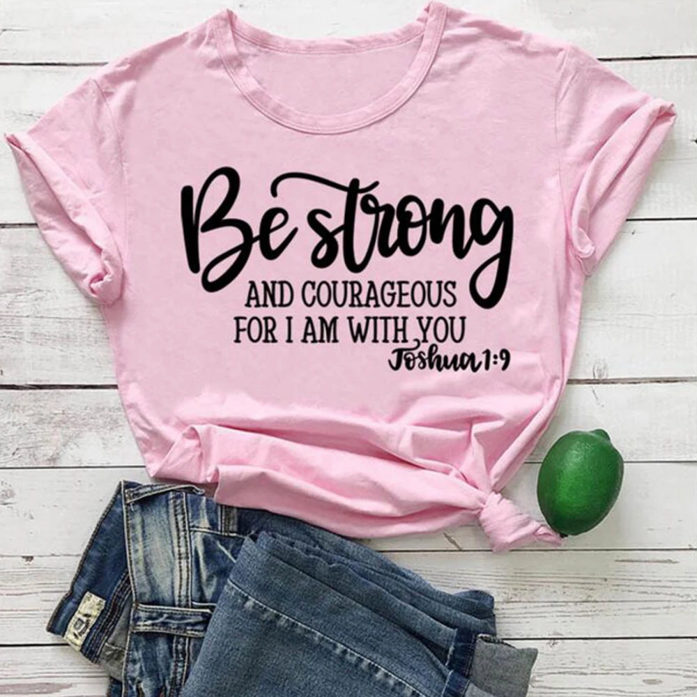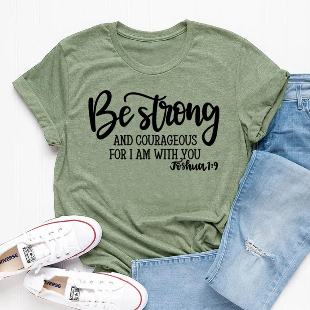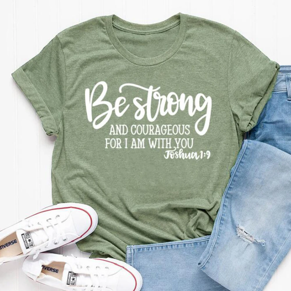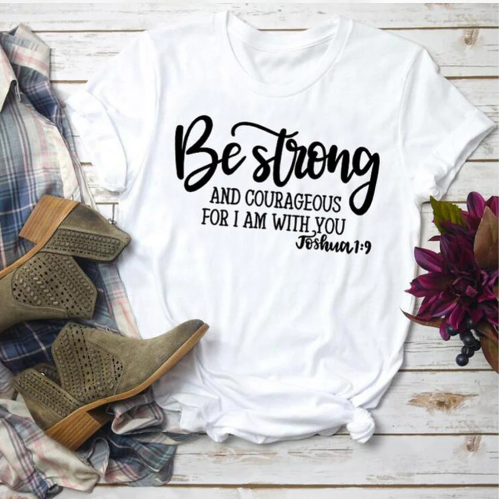 Быть сильным и смелым для меня, я с вами, Христианские Футболки, женская одежда, религия, Библия, футболка, винтажный Топ, Одежда большого размера