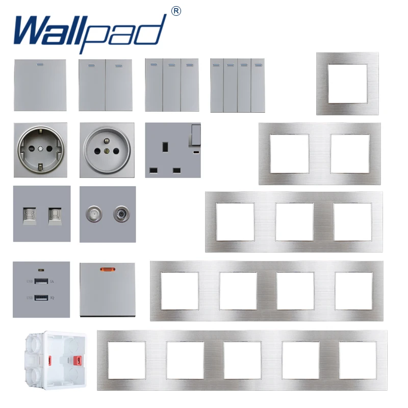 Настенный переключатель Wallpad, серебристая алюминиевая панель с ф...
