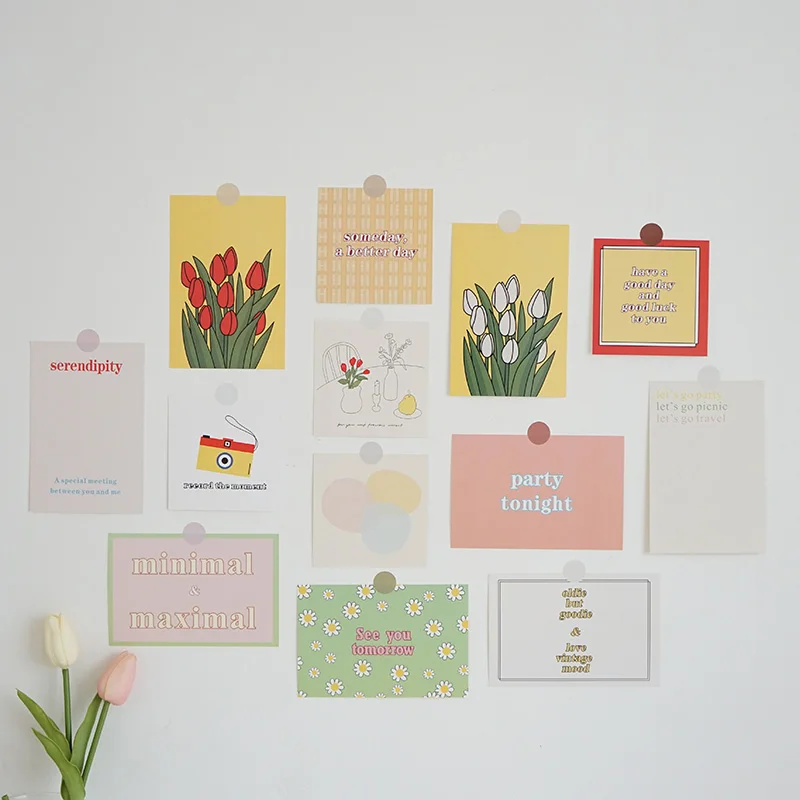13 листов Тюльпан Цветок серия декоративные открытки Набор корейский Сделай Сам стены спальни дневник наклейка на открытку милые фото реквизит фон