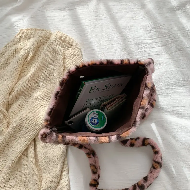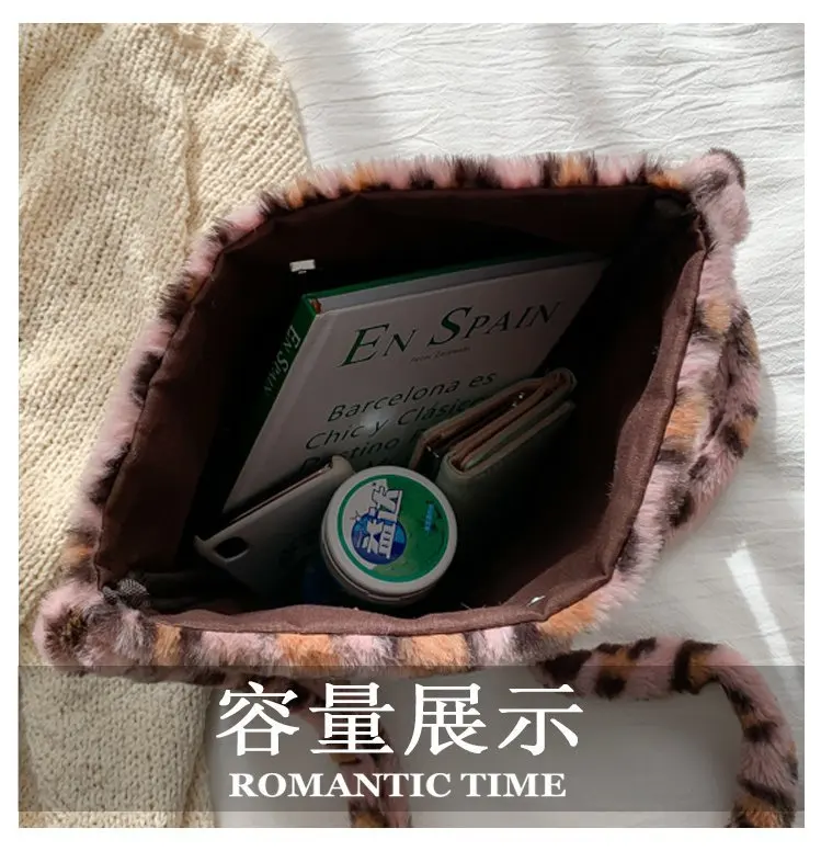 Леопардовые плюшевые сумки на плечо для женщин, осень и зима, модные женские винтажные сумки, женские вместительные сумки-мессенджеры