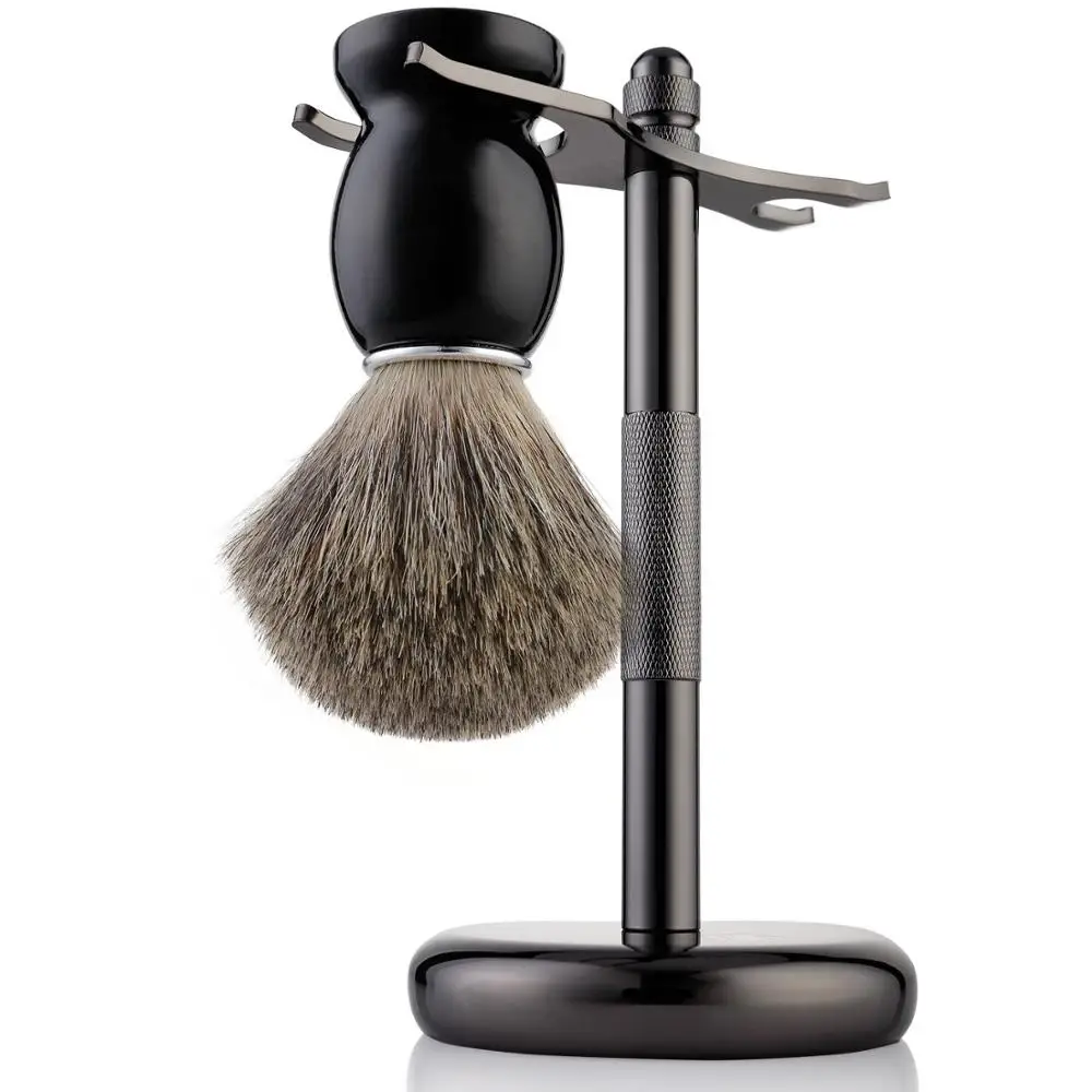 Профессиональный Мужской бритвенный набор, двусторонняя Безопасная бритва и 100% чистый Барсук бритвенная щетка и нержавеющая сталь матовый черный бритвенный станок