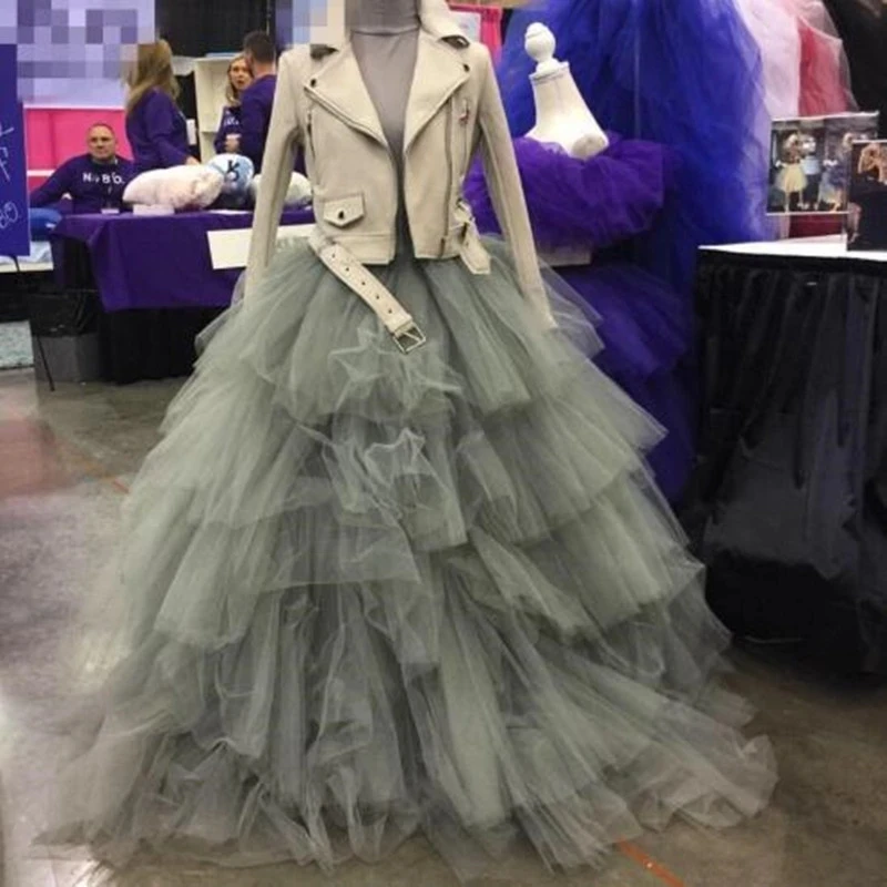 Женская юбка с оборками, уличная многоярусная юбка серого цвета, длинная юбка из тюля