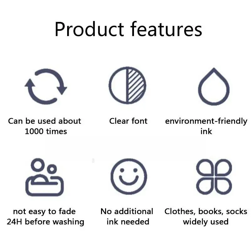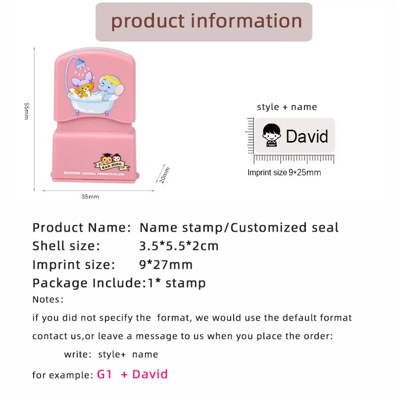 Опишите заказной детский штамп с именем Сделай Сам Детское Имя уплотнение не легко выцветает безопасности штамп с именем стикер предотвратить ребенка от потери уплотнение стикер Название продукта: штамп с именем/заказной Подпись штамп/само-инкинг Печать Размер корпуса: 3,5*5,5*2 см Размер отпечатка: 9*27 мм язык поддержки: любой (также иврит, русский язык также поддерживает s) 5-7 букв настоятельно рекомендуется для достижения наилучших результатов, потому что пространство ограничено, его оригинальные чернила могут использоваться более 1000 раз, они могут длиться в течение 2-5 лет. Этого достаточно для случайного использования свяжитесь с нами или оставьте нам сообщение. Запишите нам ваш любимый стиль и имя при размещении заказа. Такие как: G1 + David следуют за нами, свободная печатная лента (20 см) и защитная коробка
