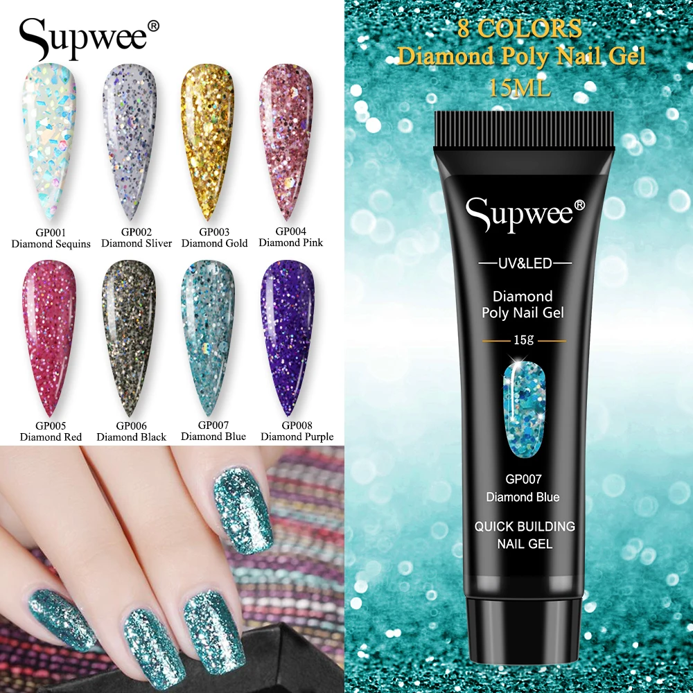 Товар: SUPWEE 15 мл поли гель для ногтей с блестками красочный гель для ногтей все для маникюра дизайн ногтей светящийся удлинитель Полупостоянный гель для ногтей