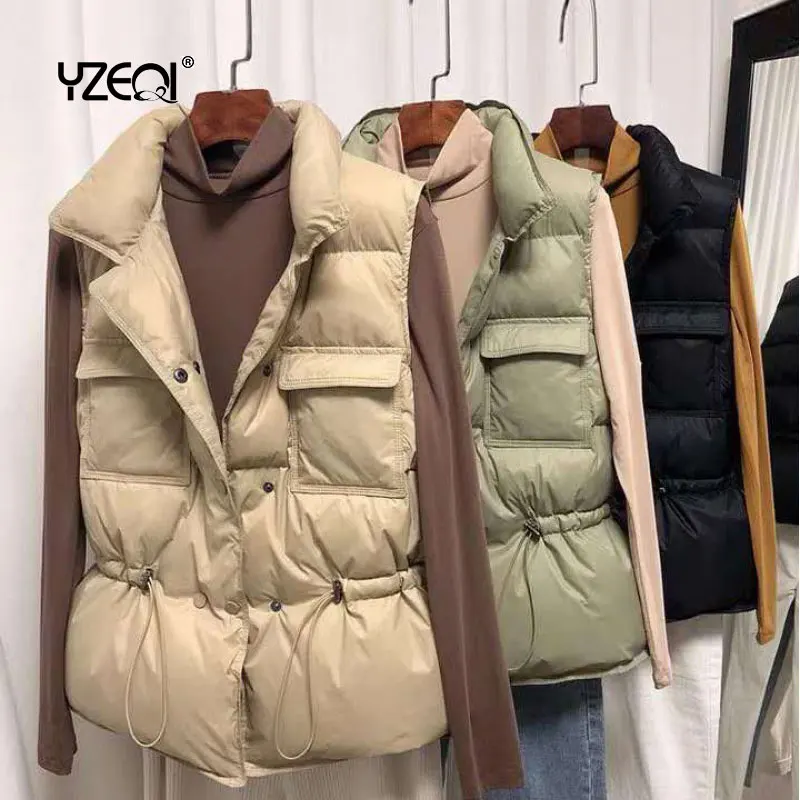 Осенне-зимний легкий пуховой жилет Yzeqi, Женская куртка без рукавов, теплая безрукавка, белая Повседневная куртка из белой утки, женские жилеты