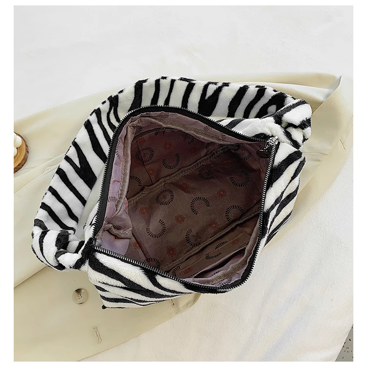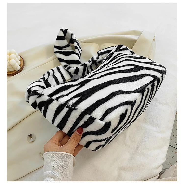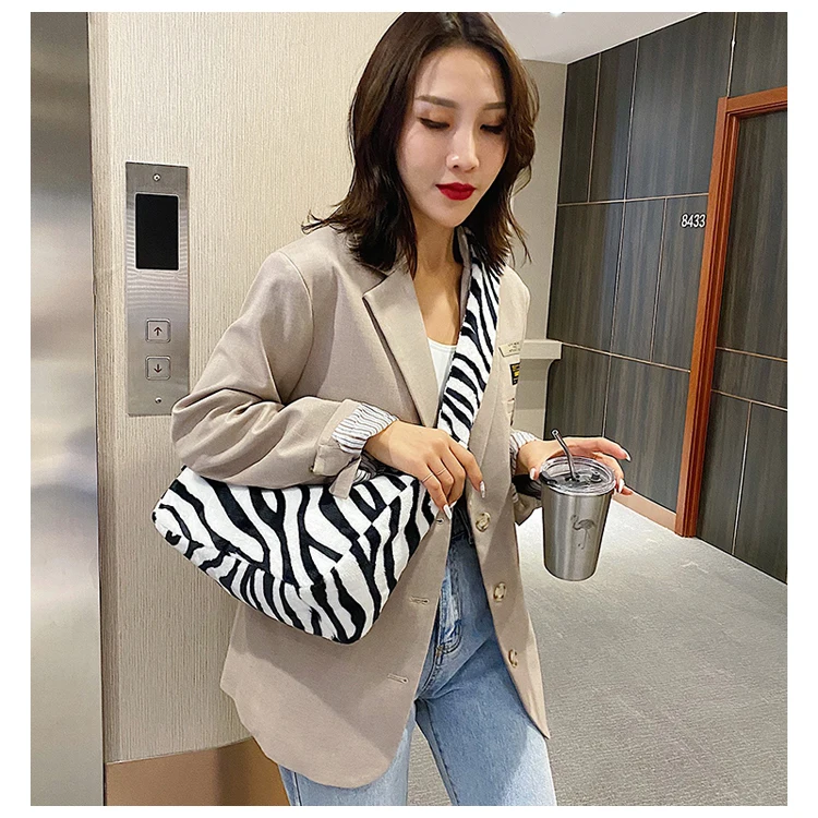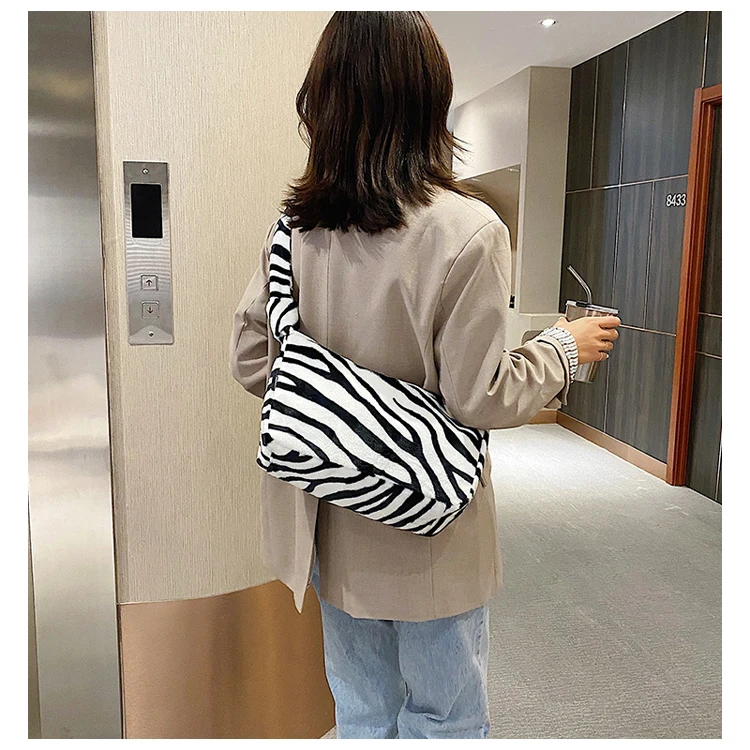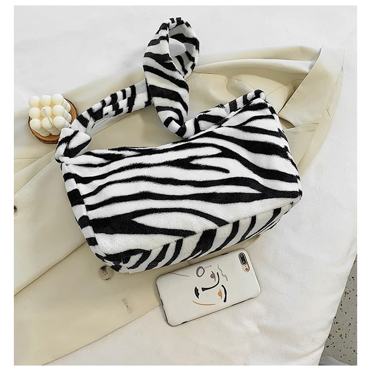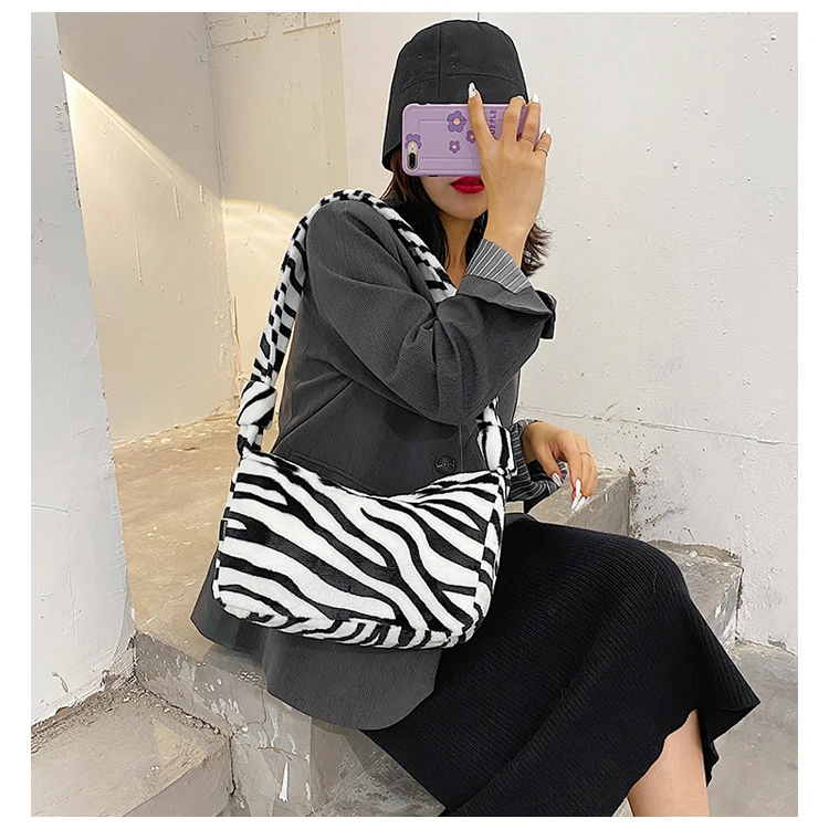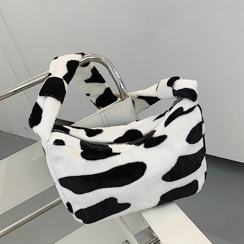 Женские плюшевые маленькие сумки на плечо, коллекция 2020 года, женская сумочка из искусственной кожи с рисунком зебры, коровы, молока, Теплые сумки для подмышек на осень и зиму, мягкая меховая сумка