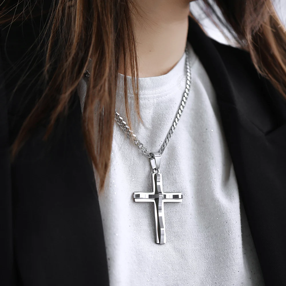 Ожерелье с подвеской в виде креста для мужчин, черный, золотой, серебряный цвет, нержавеющая сталь, мужские ювелирные изделия, дропшиппинг, США, DKP52