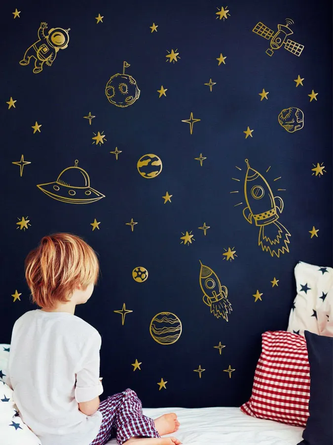 Креативная виниловая наклейка на стену с космическим кораблем ракет...