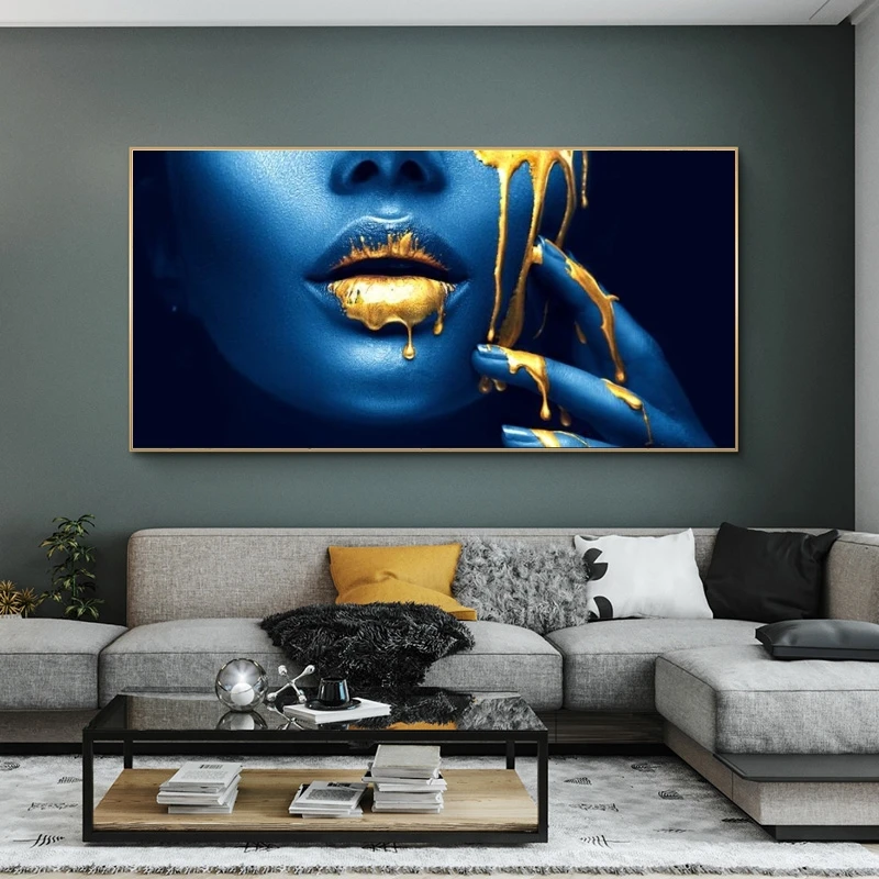 Картина на холсте с изображением женщины, сексуальные Золотые губы,...