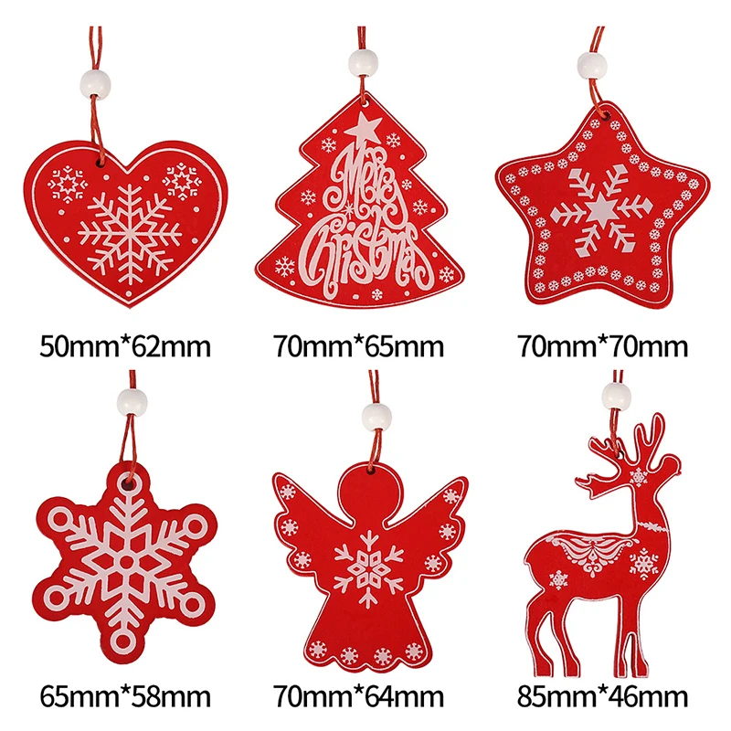 Материал: ДеревянныйПосылка: 6 шт.Размер: около 8 смПовод: аксессуары для рождественской вечеринки. Рождественские подвесные орнаменты. Кулон-украшение для рождественской елки.