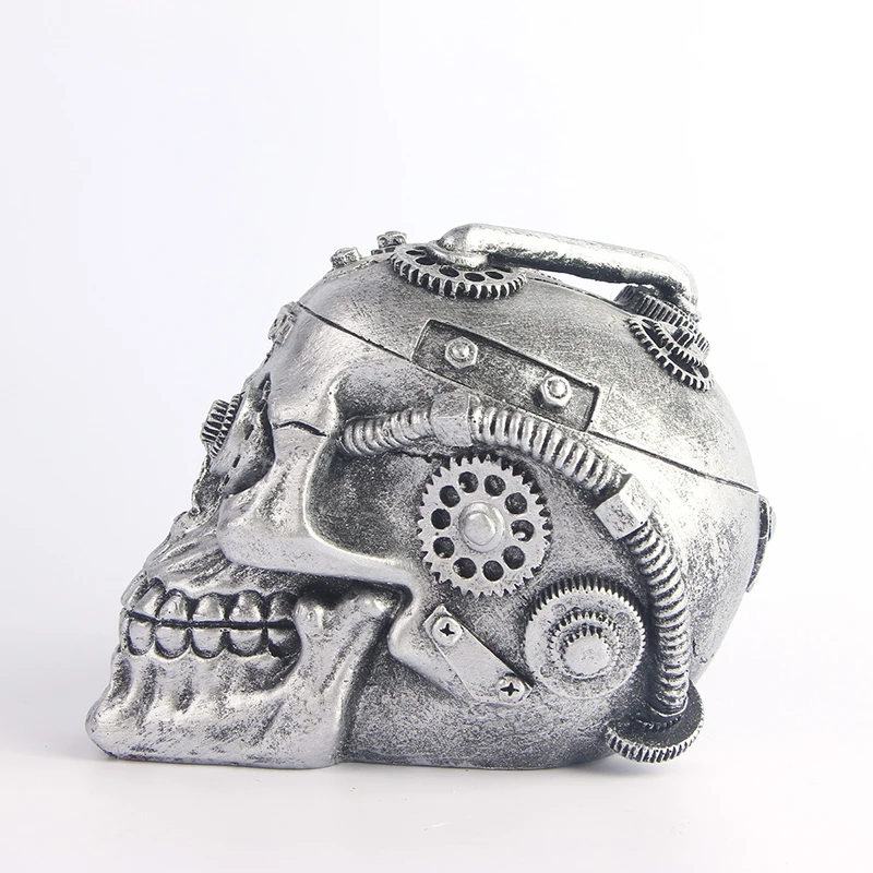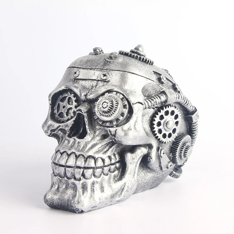 Статуи и скульптуры черепа из смолы HeyMamba, садовые статуи, скульптуры, украшения черепа, креативное искусство, механическая статуя черепа