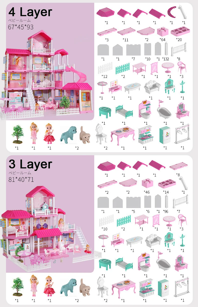 Кукольный дом ручной работы, для девочек, с замком, подарки на день рождения, Обучающие игрушки, вилла для девочек, игрушки для детей