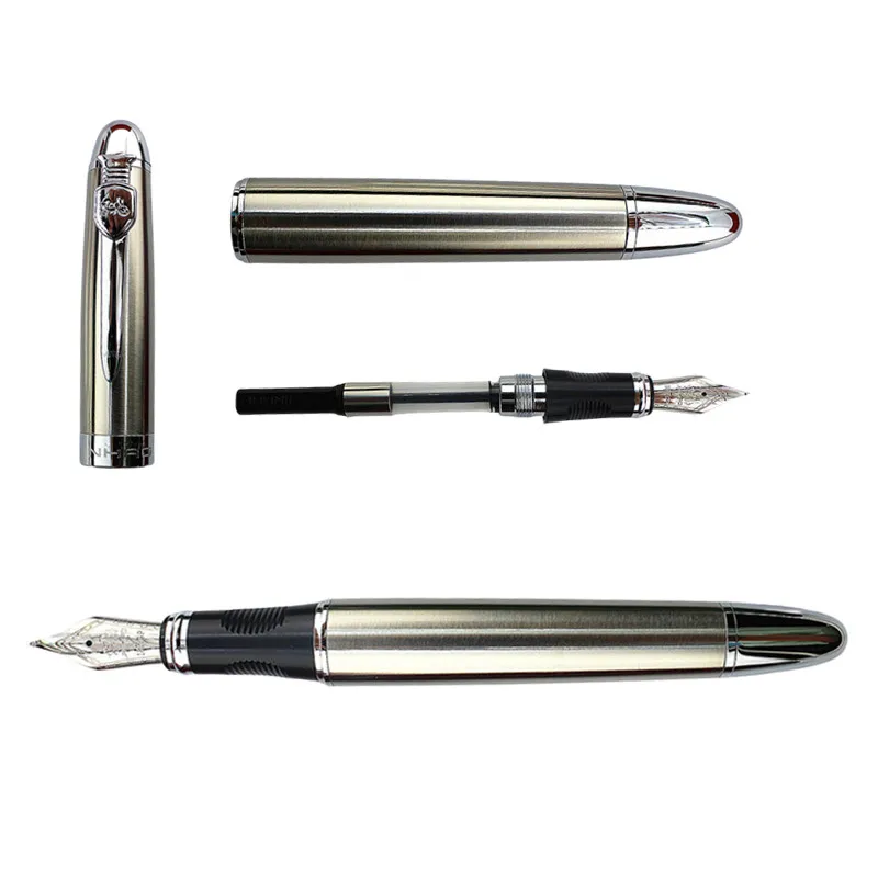 Перьевая ручка Jinhao X450A из нержавеющей стали, роскошный брендовый карандаш с чернильным наконечником среднего размера 18 карат, для школы и офиса, канцтовары в подарок