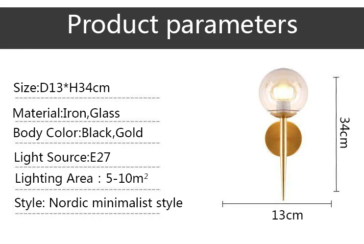 1, Напряжение: AC85-265V2, источник светильник: E273. Метод крепления: настенный4. Материал: железо, стекло5, цвет корпуса: черный, золотой6, Размер: как на изображенииПрименениеВ помещении: прикроватная тумбочка, спальня, гостиная, лестница, проход, коридор, балкон, ванная комната, туалет, каюта